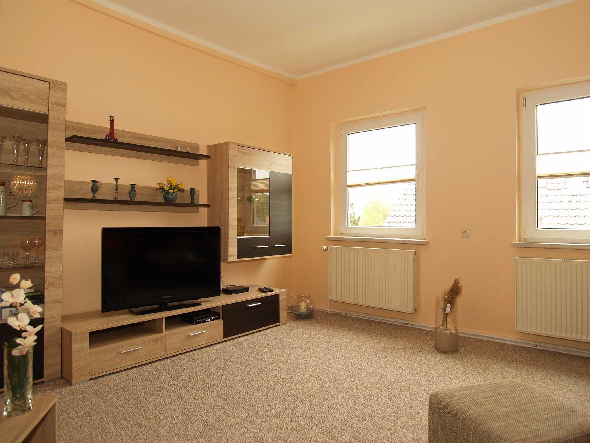 Sie wohnen in einer ca. 65 m² großen 2-Raum-Wohnung, die sich im gesamten zweiten Ober- bzw. Dachgeschoss befindet. Der Wohnraum ist ausgestattet mit Couch-Sitzecke und Sideboard mit Flat-TV. In der Küche befinden ein Esstisch, der 4-Platten-Ceranherd mit Backofen, der Kühlschrank mit Gefrierfach sowie die sonstigen Ausstattungen wie z.B. Toaster, Kaffeemaschine und Wasserkoche. Von der Küche aus betreten Sie die separate Dusche. Vom Flur aus, gelangen Sie zum separaten WC. Ebenfalls gelangen Sie vom Flur in das geräumige Schlafzimmer, von dem aus ein zweiter kleiner Schlafraum mit einem Einzelbett erreichbar ist.