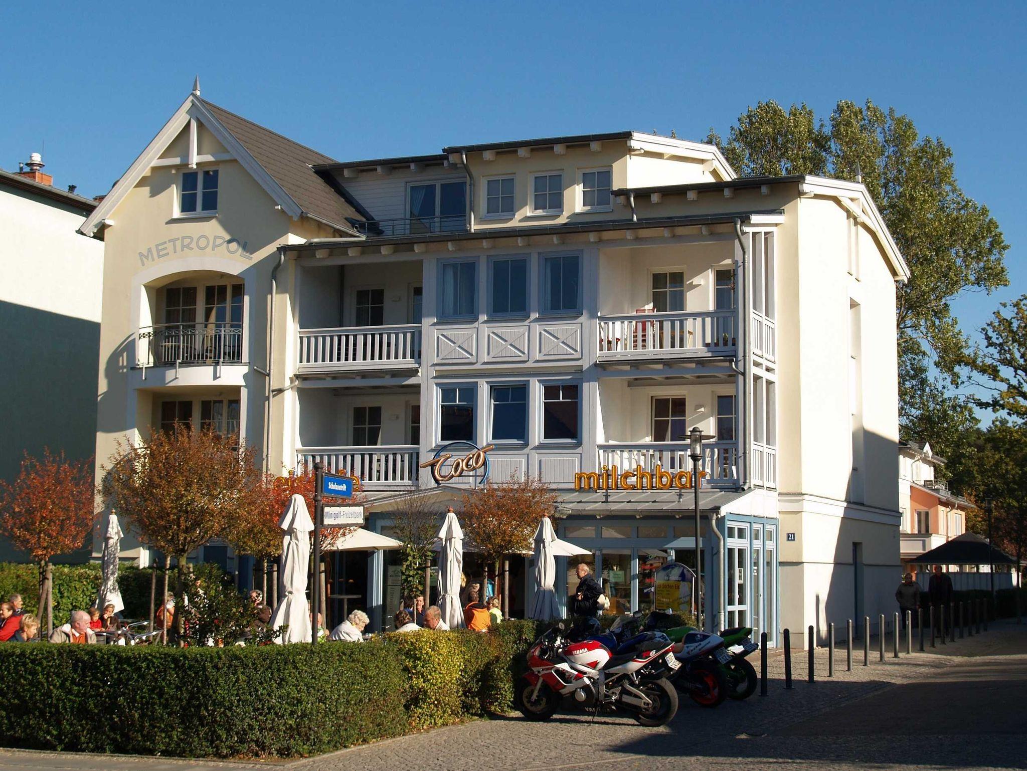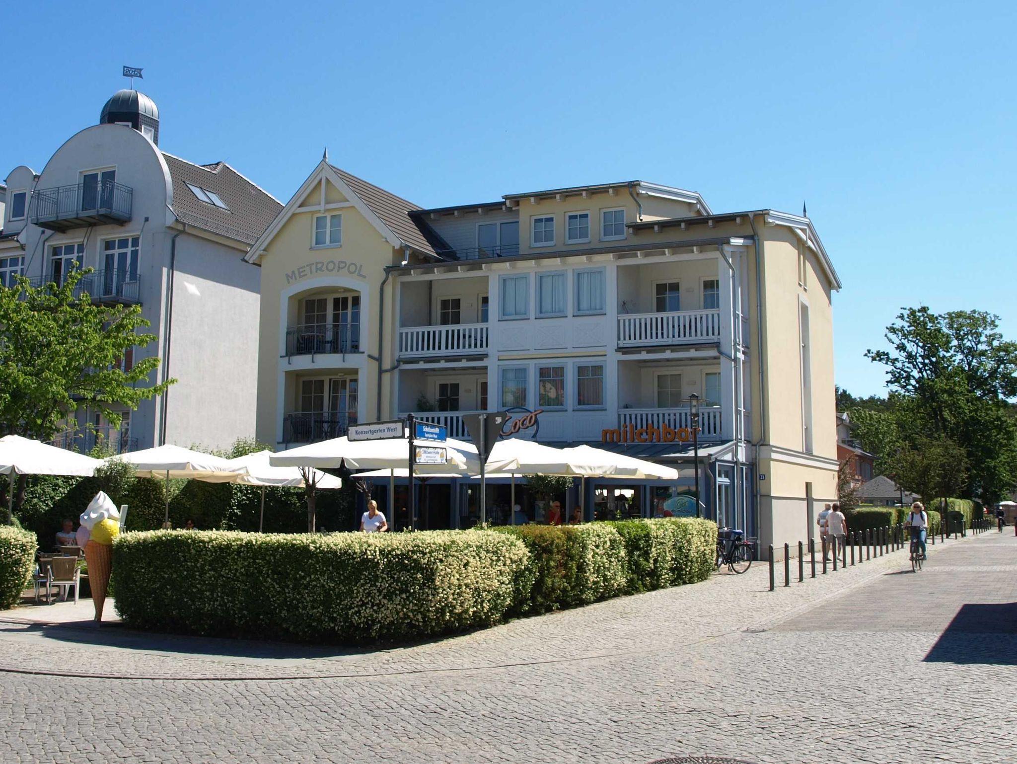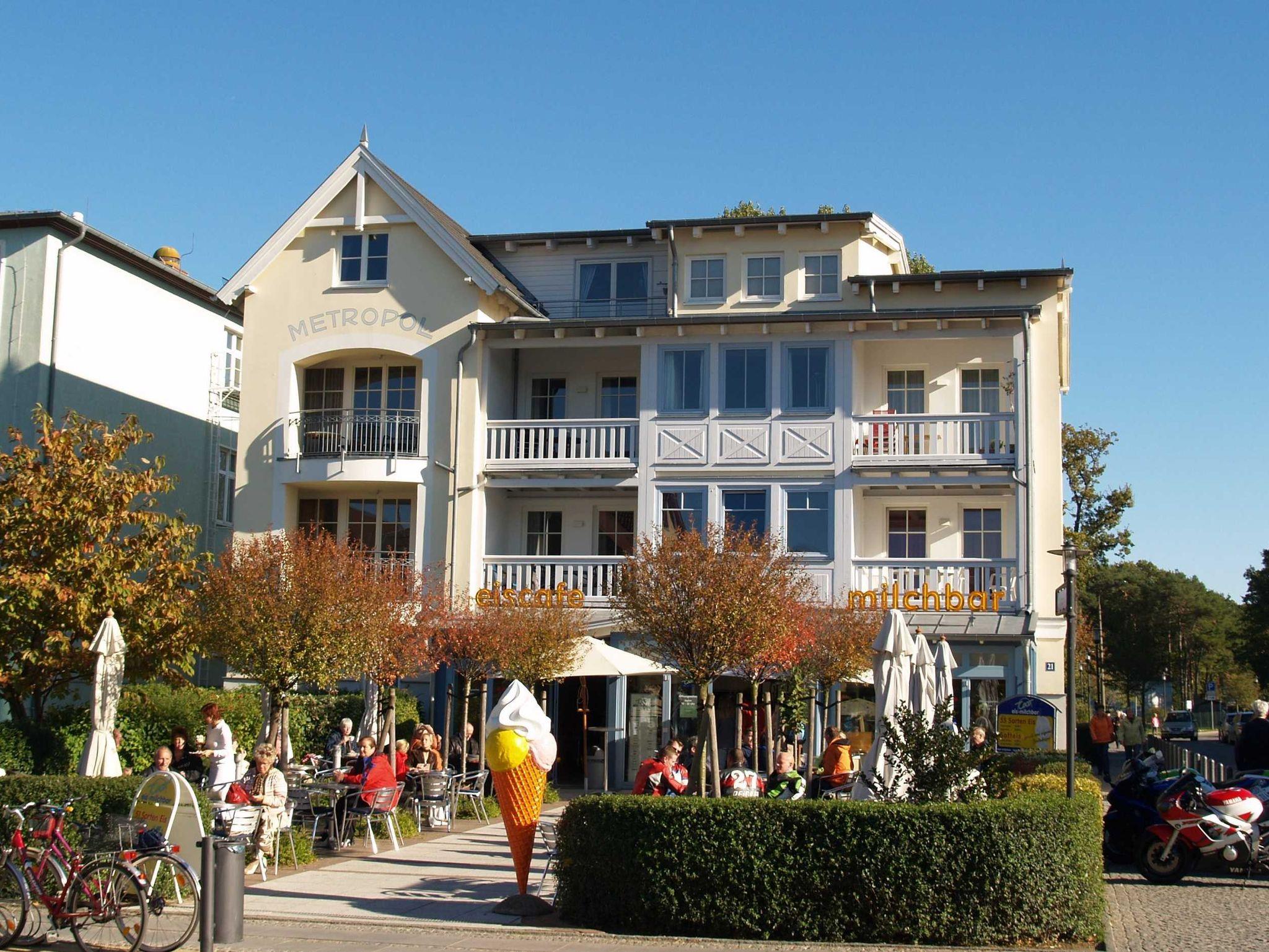 Das Haus Metropol wurde um 1900 im Stil der Bäderarchitektur erbaut und 2003 von Grund auf saniert. In diesem schönen kombinierten Wohn- und Geschäftshaus befindet sich ein Eiscafé, das zum Schlemmen in der Sonne einlädt. Alle Wohnungen verfügen über Balkon oder Terrasse sowie einen Pkw-Stellplatz. Das Haus befindet sich im Herzen von Kühlungsborn West in der beliebten Hermannstraße. In unmittelbarer Umgebung befinden sich gastronomische Einrichtungen und Einkaufsmöglichkeiten. Zum feinen Sandstrand sind es ca. 200 m.