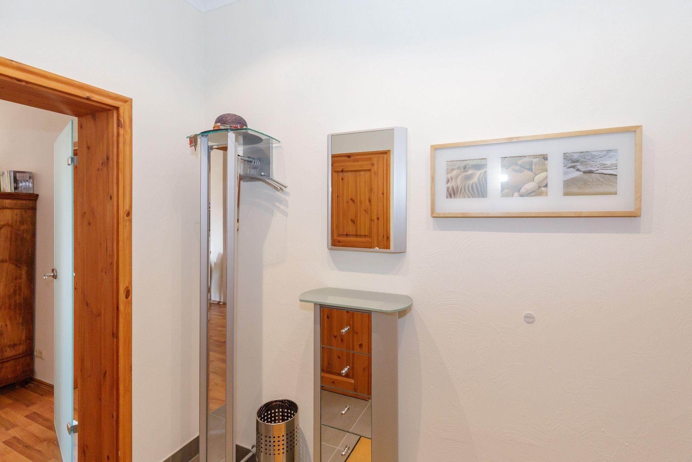 Im abgeschlossenen Flur befinden sich eine Garderobe und ein separater Abstellraum.