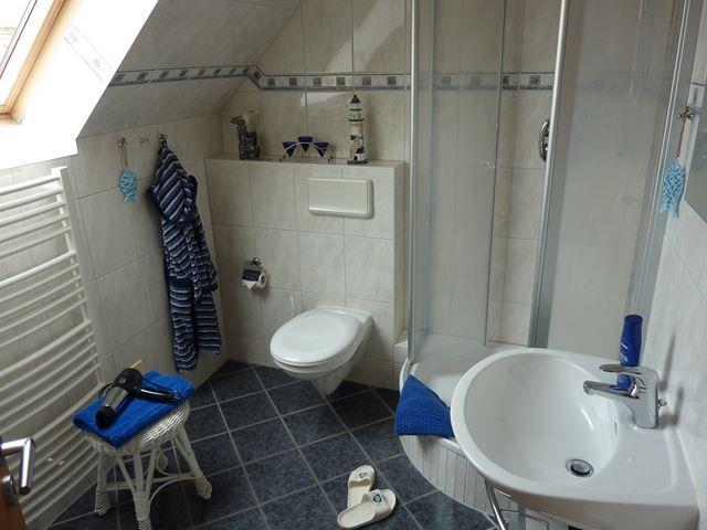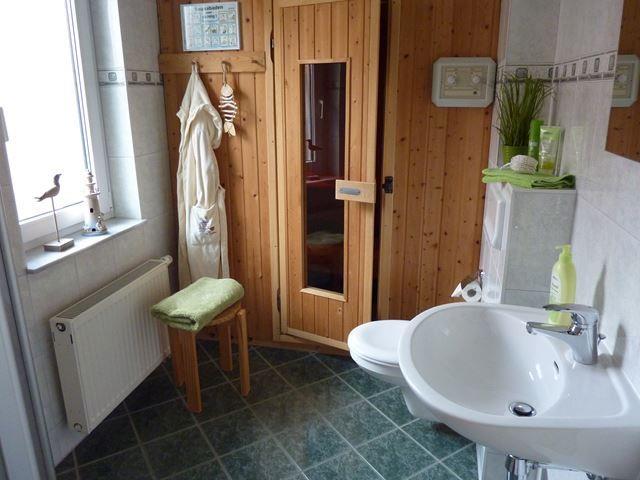 Im Erdgeschoss steht Ihnen außerdem ein Tageslichtbadezimmer mit Dusche, Waschtisch und WC zur Verfügung. In der kälteren Jahreszeit können Sie sich nach einem ausgiebigen Spaziergang am Strand in der Sauna aufwärmen und erholen.
