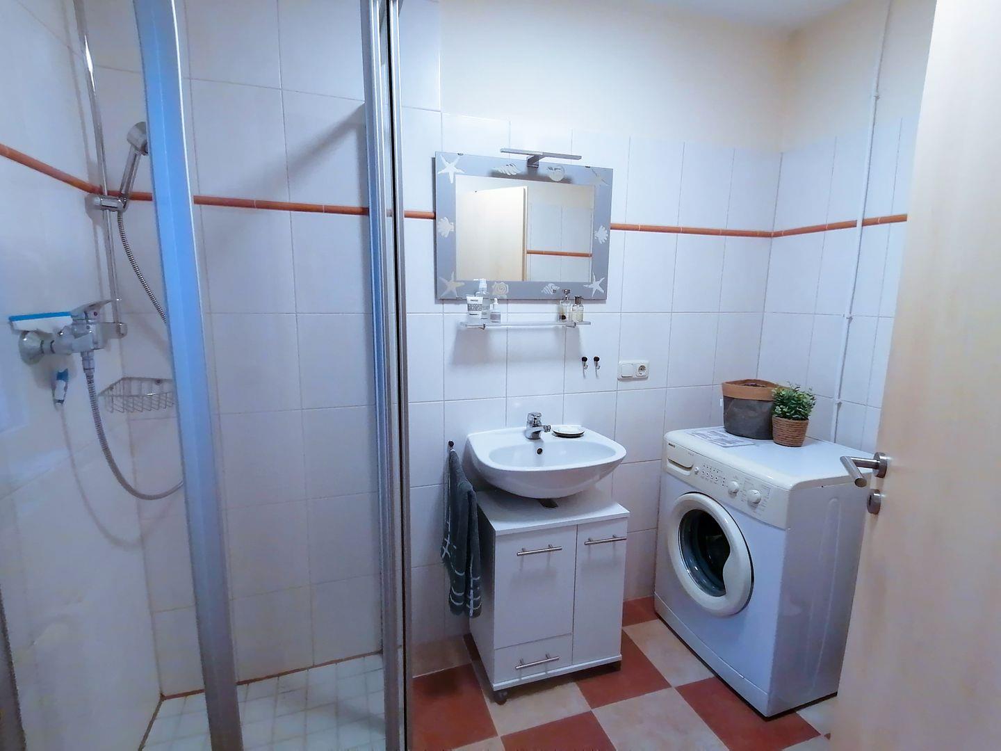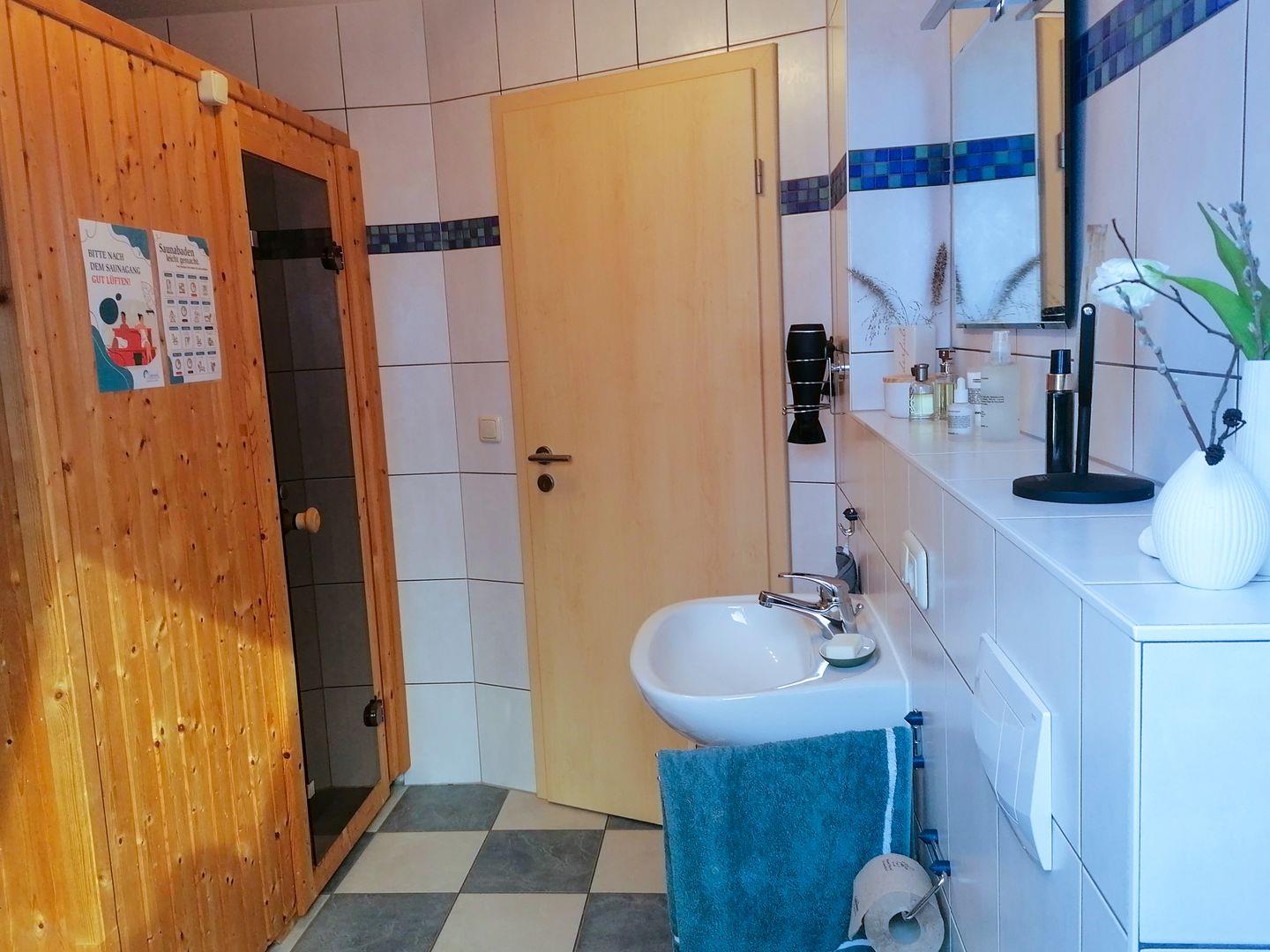 Darüber hinaus bietet das Erdgeschoss des Hauses ein Badezimmer mit Dusche, Waschtisch, WC und Sauna. Nach einem langen Strandspaziergang können Sie hier entspannen und Kraft tanken.