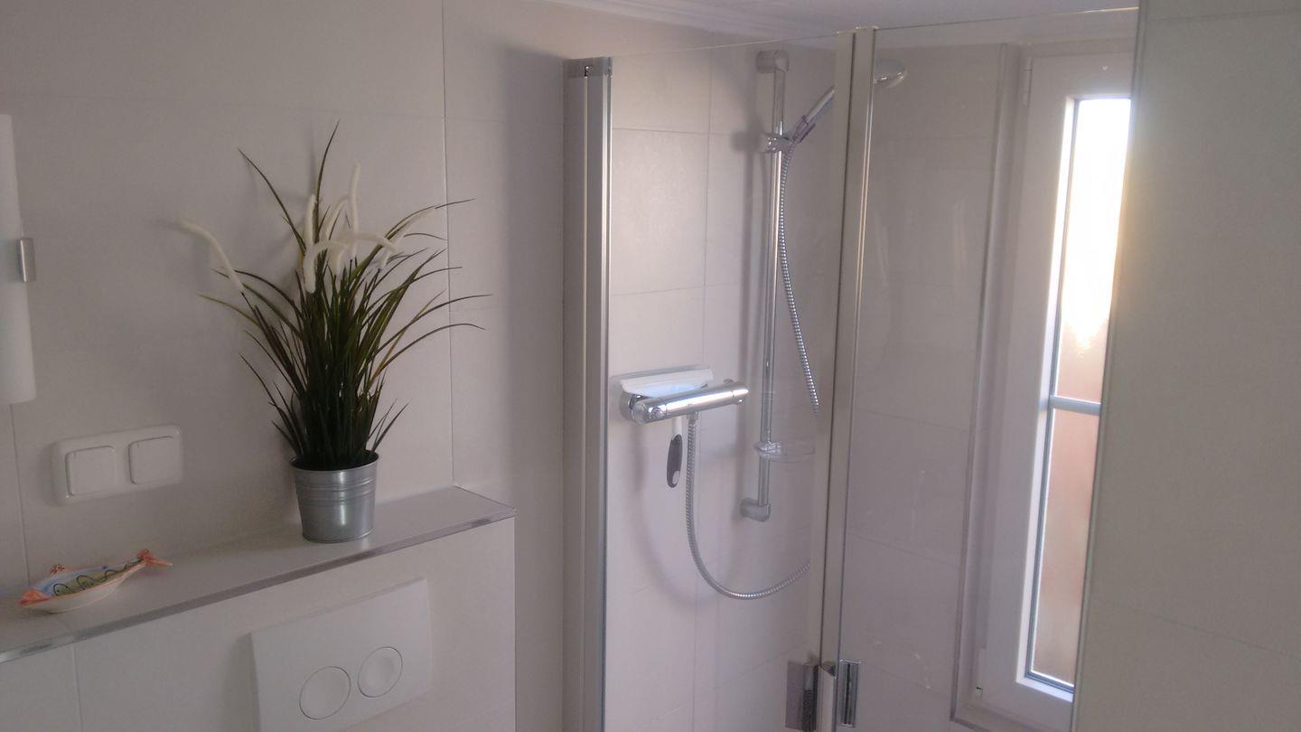 Im Badezimmer verfügen Sie über eine Dusche, ein Waschtisch und ein WC.