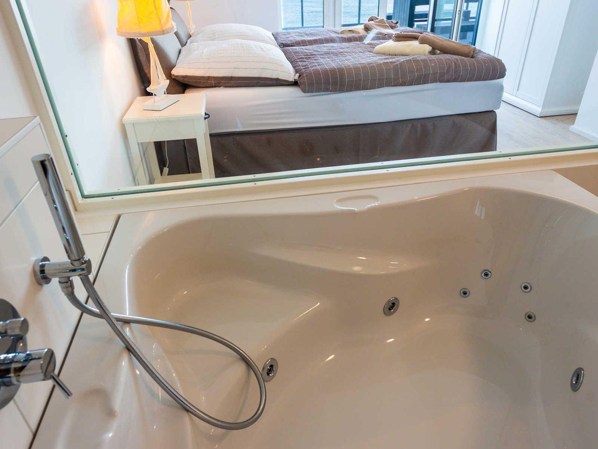Ein geschmackvoll eingerichtetes Wohnzimmer mit einer kuscheligen Couchgarnitur bietet Ihnen einen traumhaften, direkten und wohl einzigartigen Meerblick. Es schließt sich eine sehr große Dachterrasse an, auf dem sich der atemberaubende Blick auf die Ostsee im Freien genießen lässt. Zu der komplett ausgestatteten Küche gehören der einladende Esstisch samt gemütlicher Bestuhlung, ein Kühlschrank mit Gefrierfach, ein Backofen, eine Mikrowelle, ein Geschirrspüler und selbstverständlich weitere Küchenutensilien. Zwei gemütliche Schlafzimmer - davon eins mit Meerblick - sind mit jeweils einem Boxspring-Doppelbett eingerichtet. Des Weiteren gehören ein Duschbad sowie ein weiteres Bad mit eigener Sauna, aus der Sie ebenfalls freien Blick auf die Ostsee haben, und Badewanne zur Ferienwohnung.