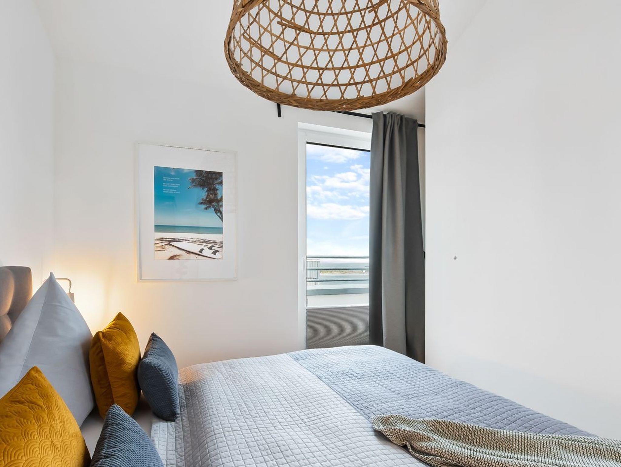 Der Masterbedroom verwöhnt Sie mit einem Doppelbett von 180cm Breite, einem Fernseher und dem Zugang zur Dachterrasse. Das zweite Schlafzimmer wartet mit einem Doppelbett von 160cm Breite auf und bietet ebenfalls Zutritt zur Dachterrasse. Schöner können Aufwachen und Einschlafen nicht sein - auf einer privaten Insel hoch über der Ostsee.