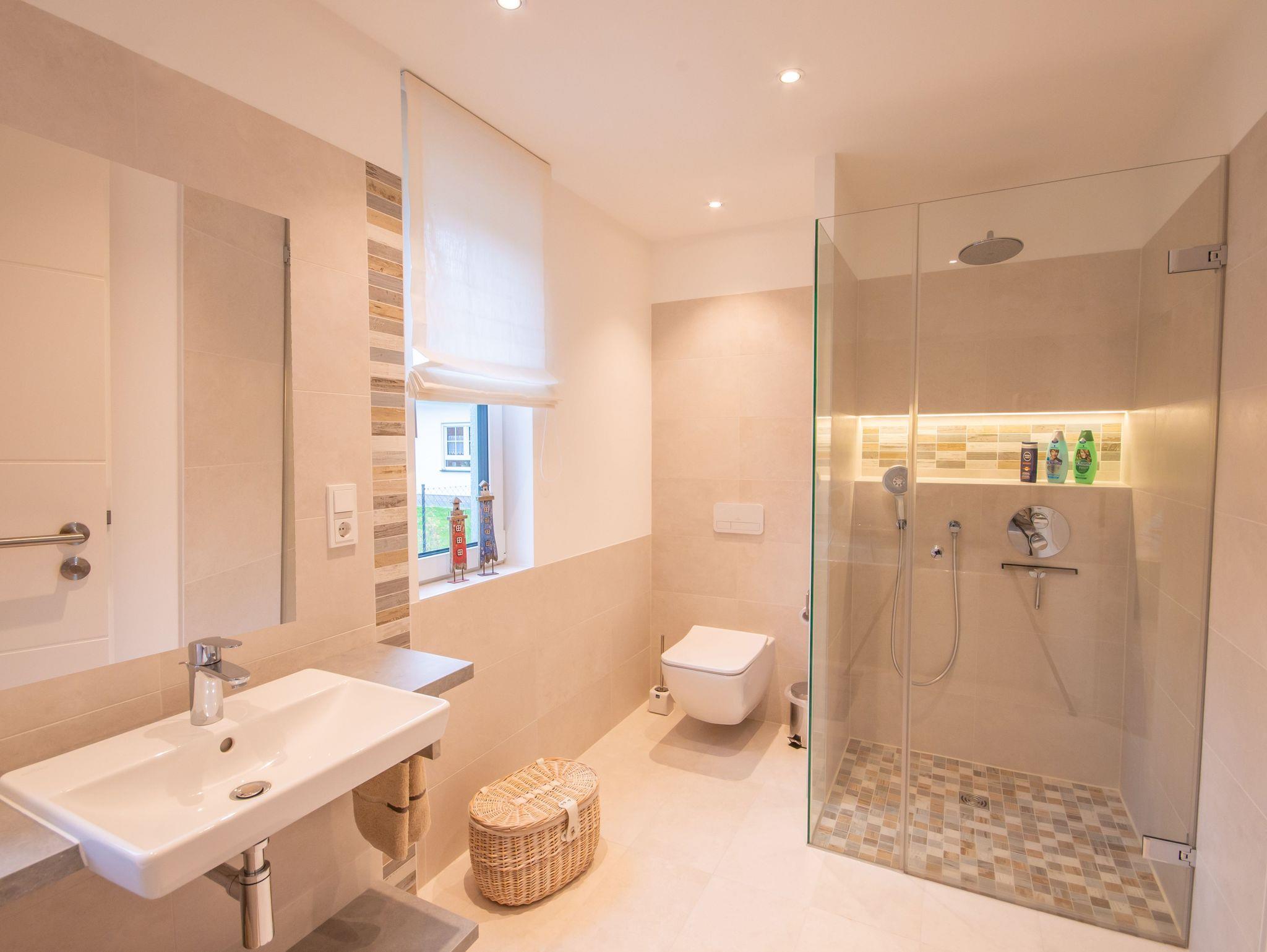 Zur Ausstattung des Hauses: Wohn- und Esszimmer im Erdgeschoss mit integrierter, vollausgestatteter Küche und anheimelndem Kaminofen, zwei Zweisitzer plus Relaxsessel in gemütlicher Atmosphäre mit Fernseher. Küche mit Kühlschrank mit VitaFresh-Fächern und Gefrierfach, Induktionskochfeld, Backofen mit Grill- und Mikrowellenfunktion, Geschirrspüler, Kaffeemaschine, Wasserkocher, Toaster, Geschirr, Besteck, Kochgeschirr etc. Bad im Erdgeschoss mit Badewanne und Dusche. Bad im Obergeschoss mit Dusche, Fön und angrenzender Sauna, großzügig geschnitten für Ihren Saunagang. Zwei Schlafzimmer jeweils mit Doppelbett, Kofferbank und ausreichend Stauraum für Ihre Lieblingsstücke. Wohn- und Schlafzimmer im Obergeschoss mit zwei Einzelbetten, Fernseher, Schreibtisch und Schränken etc. Hauswirtschaftsraum mit Waschmaschine und Wäscheständer, Bügeleisen und Staubsauger zzgl. drei verschließbarer Wertfächer für Ihre persönlichen Wertgegenstände. (Kinderhochstuhl/Babybett auf Wunsch kostenfrei verfügbar) Das gesamte Haus ist mit Fussbodenheizung ausgestattet.