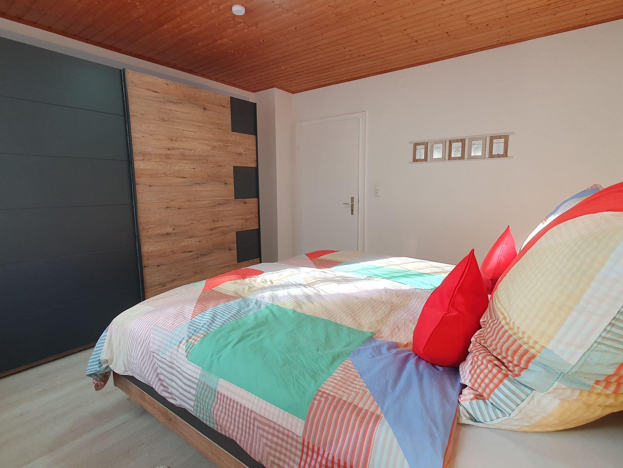 Unsere Ferienwohnung mit großem Balkon befindet sich im 1. Stock eines Zweifamilienhauses in der Siedlung von Karlstadt. Sie wohnen in einer gemütlich eingerichteten, mit allem Komfort ausgestatten 85 qm großen Wohnung für 2-4 Personen. Sie verfügt über 1 Schlafzimmer mit einem 190cm x200cm großem Doppelbett und einem großen Kleiderschrank. Ein weiteres Schlafzimmer mit einem 140cm breiten Bett, Schrank, Tisch und zwei Hocker. Das Wohnzimmer ist mit einer Schrankwand, SAT-TV und kostenlosem W-LAN eingerichtet. Die komplett ausgestattete Küche mit Geschirrspüler, Kühlgefrierkompination, Einbauherd mit Backofen, Mikrowelle, Wasserkocher, Toaster, lässt keine Wünsche offen. Das Badezimmer mit ebenerdiger Dusche und WC, großem Spiegelschrank Föhn und Handtücher stehen zu Verfügung. Ein separates kleines Zimmer mit Klappsofa und Kinderreisebett stehen wenn benötigt bereit. Die Wohnung verfügt über einen 30qm großen Balkon mit überdachter Sitzecke. Einen Parkplatz am Haus können sie kostenfrei nutzen.