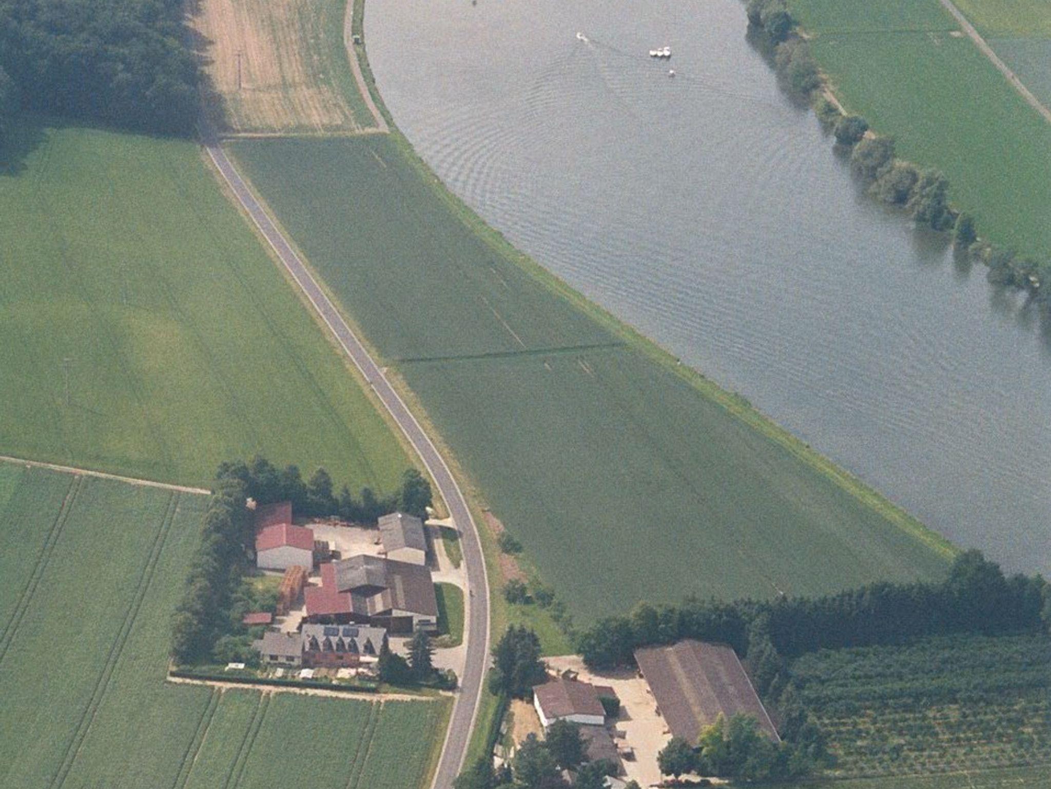 Unser Hof liegt idyllisch im Maintal, eingerahmt vom Main, Weinbergen und Waldflächen.