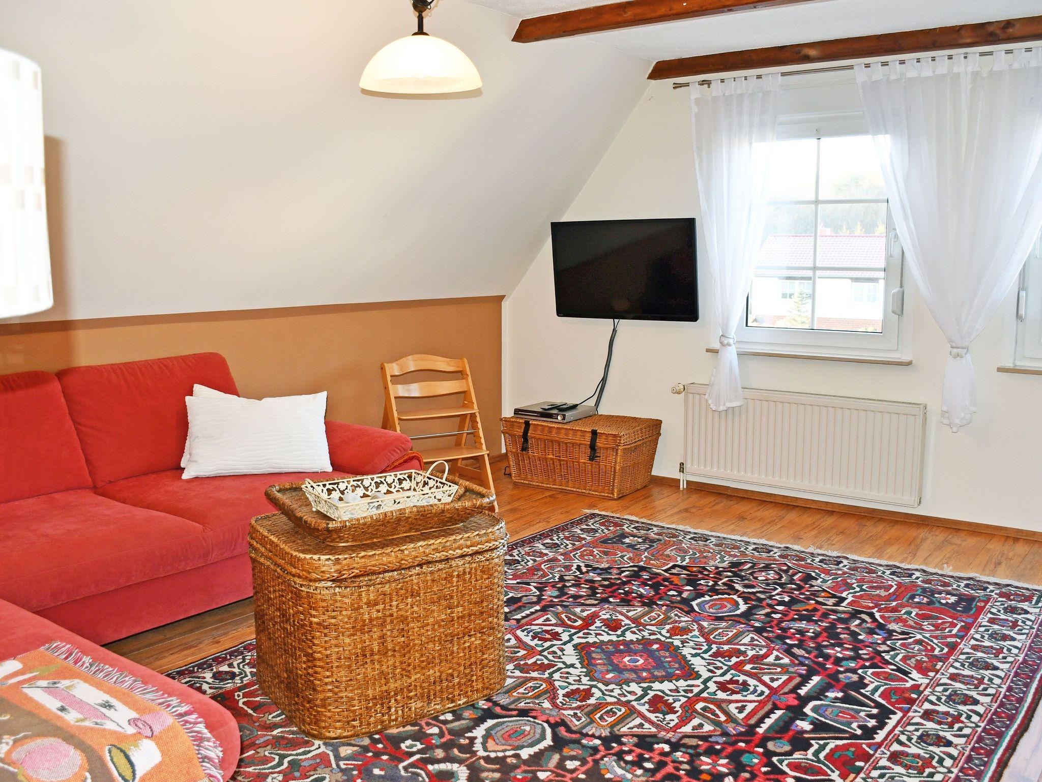 Die Ferienwohnung selbst befindet sich im Obergeschoss eines Wohnhauses und hat einen eigenen Eingang. Sie wurde modern und komfortabel eingerichtet. Zu dieser Ferienwohnung gehört auch ein überdachter Sonnenplatz mit Gartenmöbel der den Gästen im Garten zur Verfügung steht.