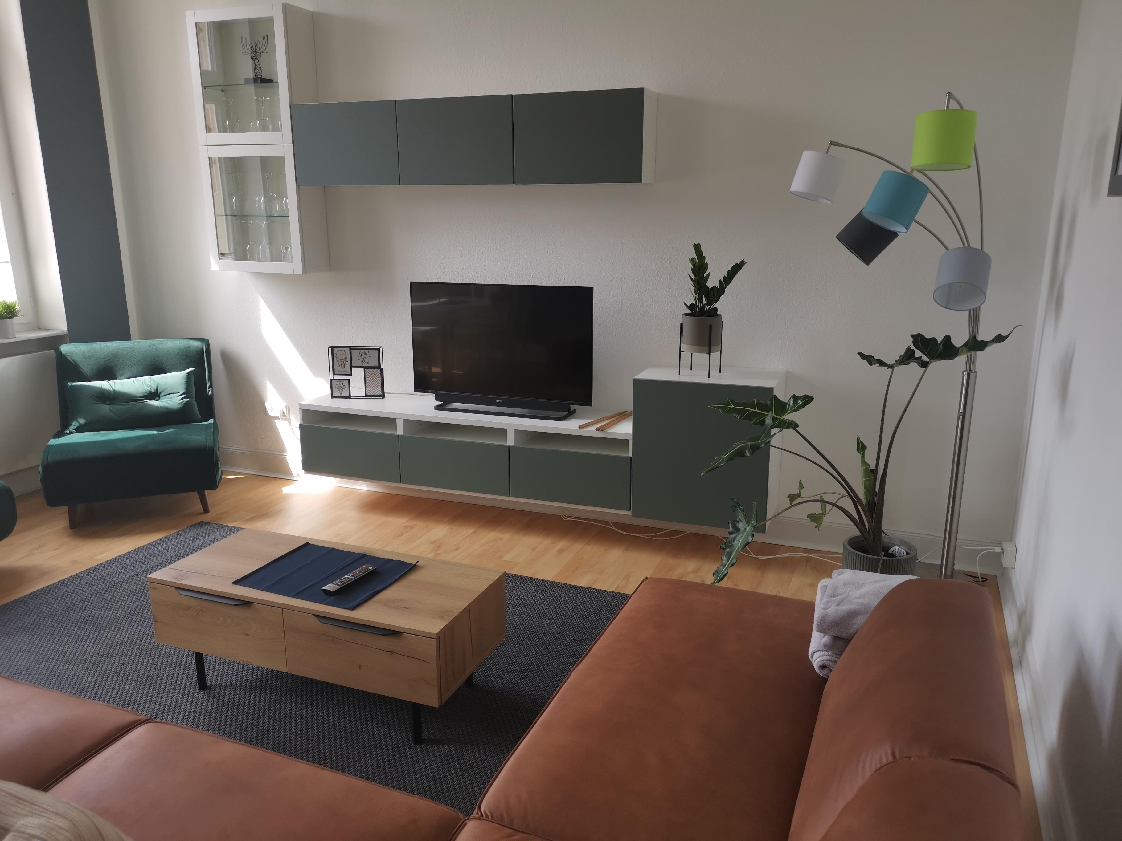 Zum 01.01.2023 können Sie diese Wohnung mit schöner und neuwertiger Innenausstattung beziehen. Es handelt sich hierbei um eine Mitte 2021 sanierte Wohnung - neue Einbauküche sowie neues Badezimmer mit Dusche, Erneuerung der Elektrik, neuer Anstrich von Türen und Wänden. Die Wohnung besitzt ein Schlafzimmer mit französischem Bett (180x200), ein Schlafzimmer mit Hochbett (140x200), Schreibtisch und zwei Schlafsesseln (80x200) sowie ein Wohn-/Esszimmer mit großer Couch und Flachbildfernseher. Somit können bis zu 6 Personen übernachten. In der nagelneuen Einbauküche finden Sie alles was Sie für einen angenehmen Aufenthalt benötigen. Des Weiteren ist eine Waschmaschine sowie ein Trockner vorhanden. Internetanbindung mit 100Mbit.