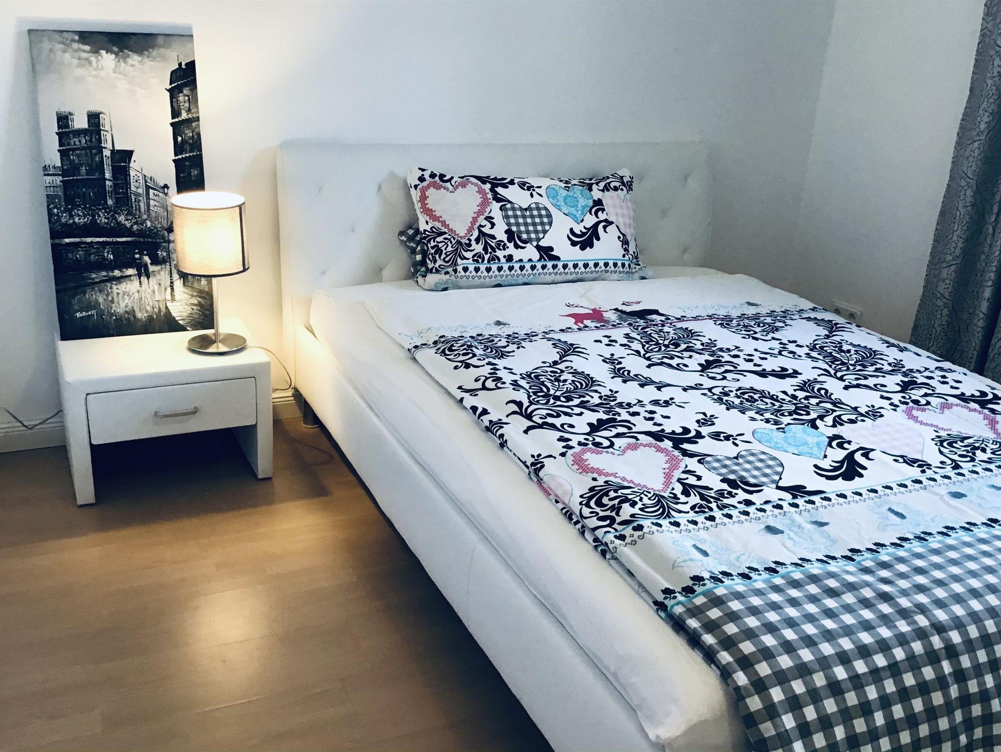 Es stehen Ihnen zwei separate Schlafräume zur Verfügung. Genießen Sie einen top-Liegekomfort in einem zwei Meter breiten Doppelbett und nutzen Sie bei Bedarf die weitere Schlafgelegenheit in einem 1,40 m breiten französischen Bett. Das Bad ist ausgestattet mit Dusche/WC/Fön.