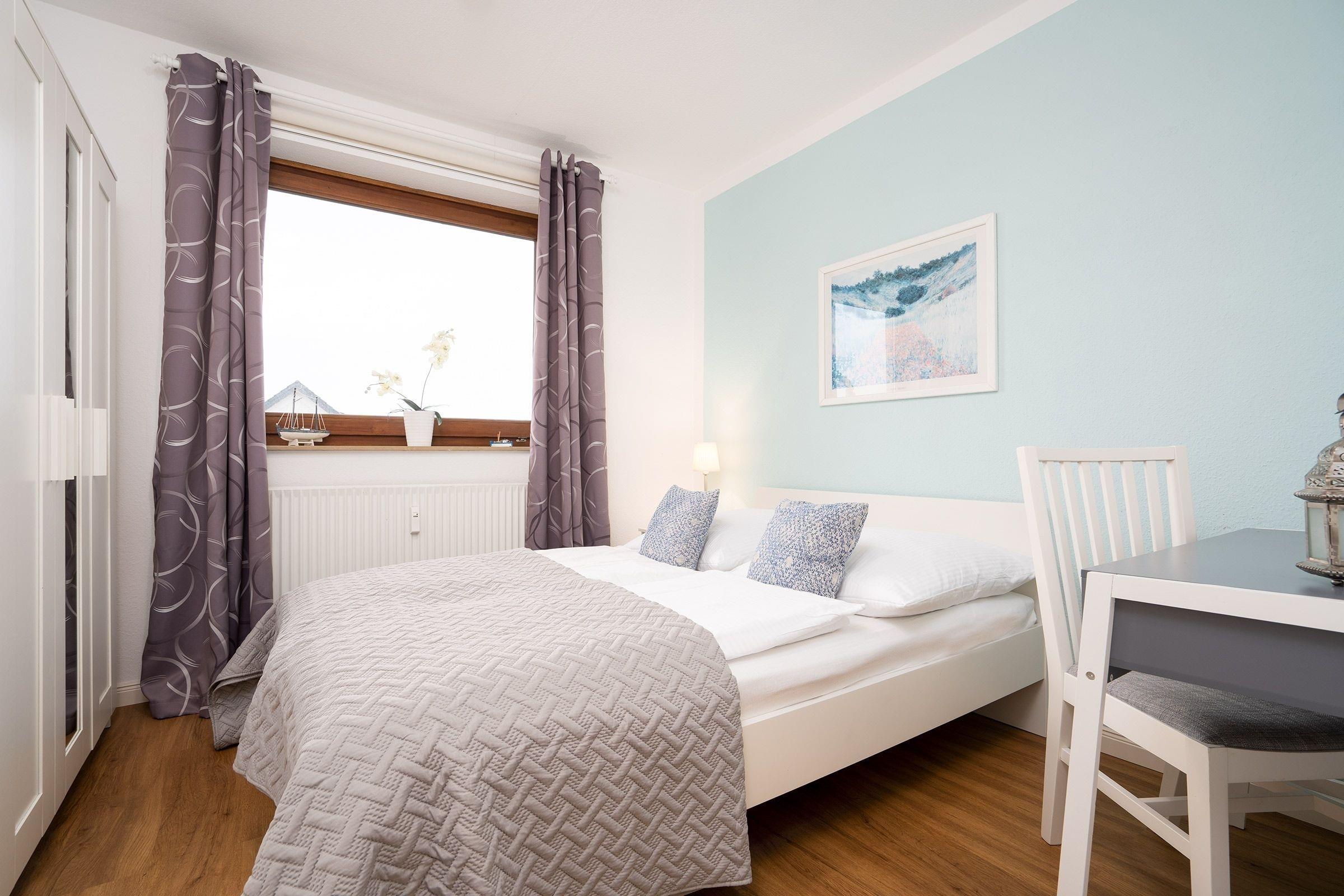 Schlafzimmer 2: 1 Doppelbett (2x 90x200 cm), Kleiderschrank, Verdunkelung (Rollo).