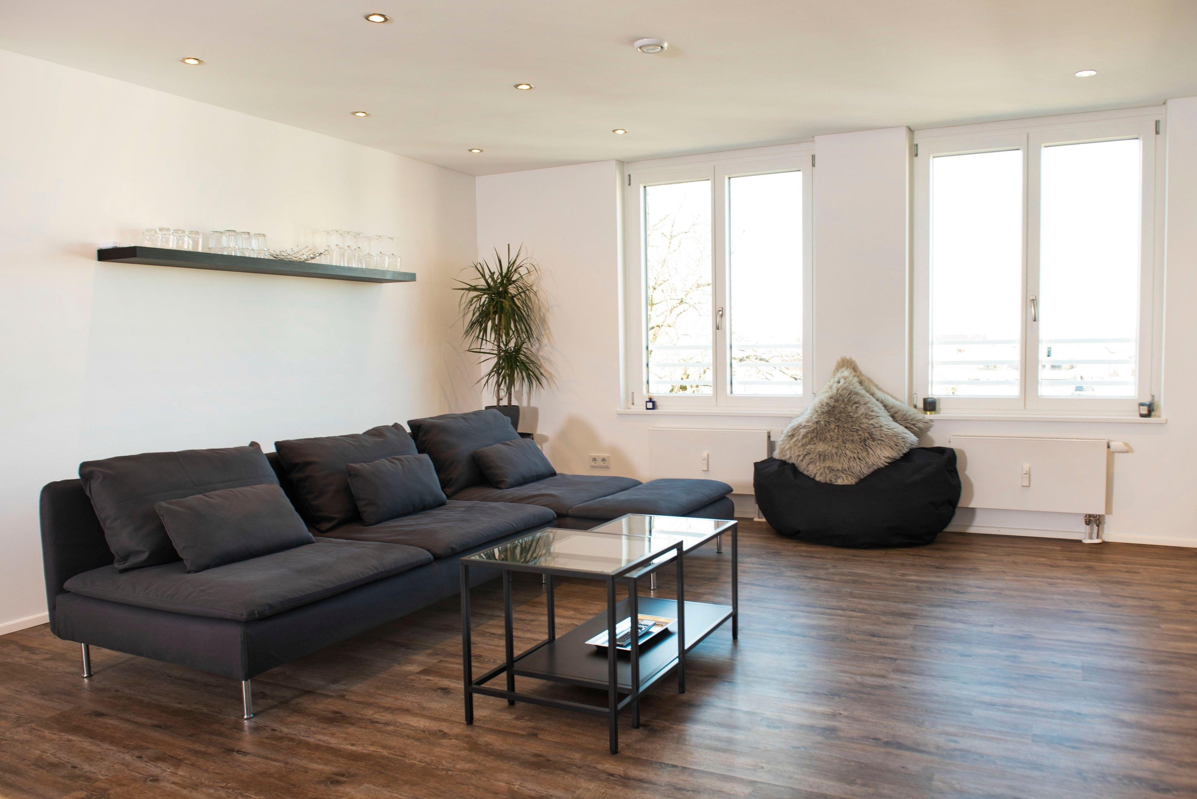 Das Schlafzimmer empfängt Sie mit einem 180x200cm Doppelbett und Zugang zum Badezimmer. Die Beleuchtung und Heizung im gesamten Appartement wird über ein Smart-Home-System gesteuert, worüber ihr je nach Empfinden Farbton und Lichtintensität bequem einstellen könnt. Zusätzlich bietet die Wohnung Breitband Internet WLAN.