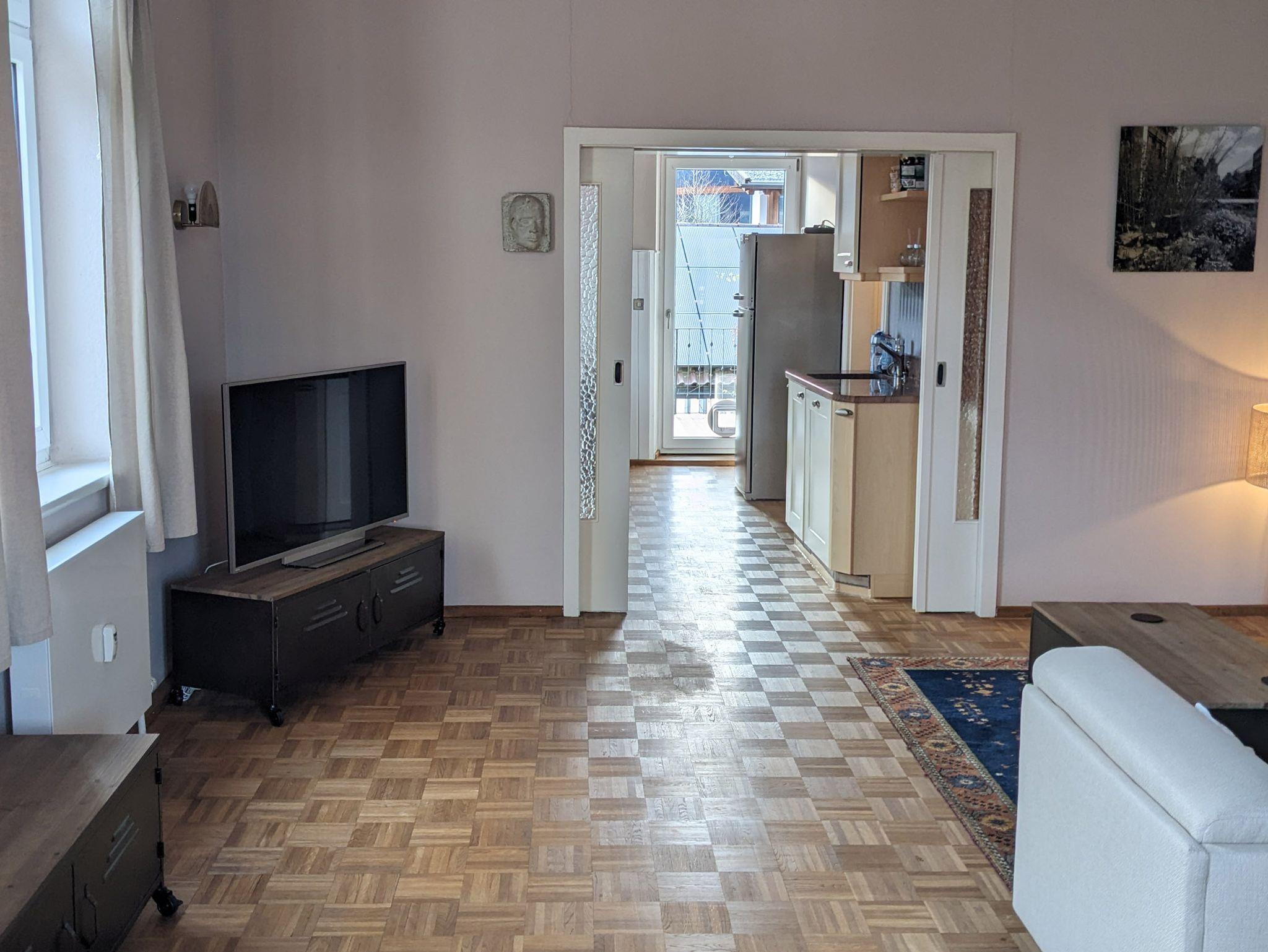 Repräsentatives Anwesen aus dem Baujahr 1903 in exponierter Lage über den Dächern von Kiefersfelden mir freiem Blick auf das Inntal und die Festung Kufstein, direkt am Fuß des Buchberg's gelegen. Die Wohnung liegt im 1. Stock und ist aus ursprünglich 2 Wohnungen zusammengefügt. Sie hat daher 2 Schlafzimmer in jeweils abgetrennten Bereichen mit zugehörigem hochwertigem Badezimmer - eines mit Waschmaschine, Dusche und WC und das andere mit holzverkleideter Badewanne und WC. Die Raumhöhe beträgt bis zu 3,30 m mit stuckverzierter Decke. Ein großes Wohnzimmer mit freiem WLAN-Zugang. Eine exklusiv vollausgestattete Wohnküche mit Terrassenzugang und einem Esstisch für 6 Personen. Ein besonderes Highlight ist die 20 qm große Terrasse mit freiem Blick ins Inntal und die umliegenden Berge. Die Wohnung ist am besten geeignet für 4 Personen, welche auf eine exklusive Wohnumgebung und gehobene Wohnqualität mit hochwertiger Ausstattung Wert legen. Aufgrund der Hanglage der Immobilie ist sie für gehbehinderte Menschen eher nicht geeignet. Die Anfahrt erfolgt über eine schmale teils steile Anwohnerstrasse.