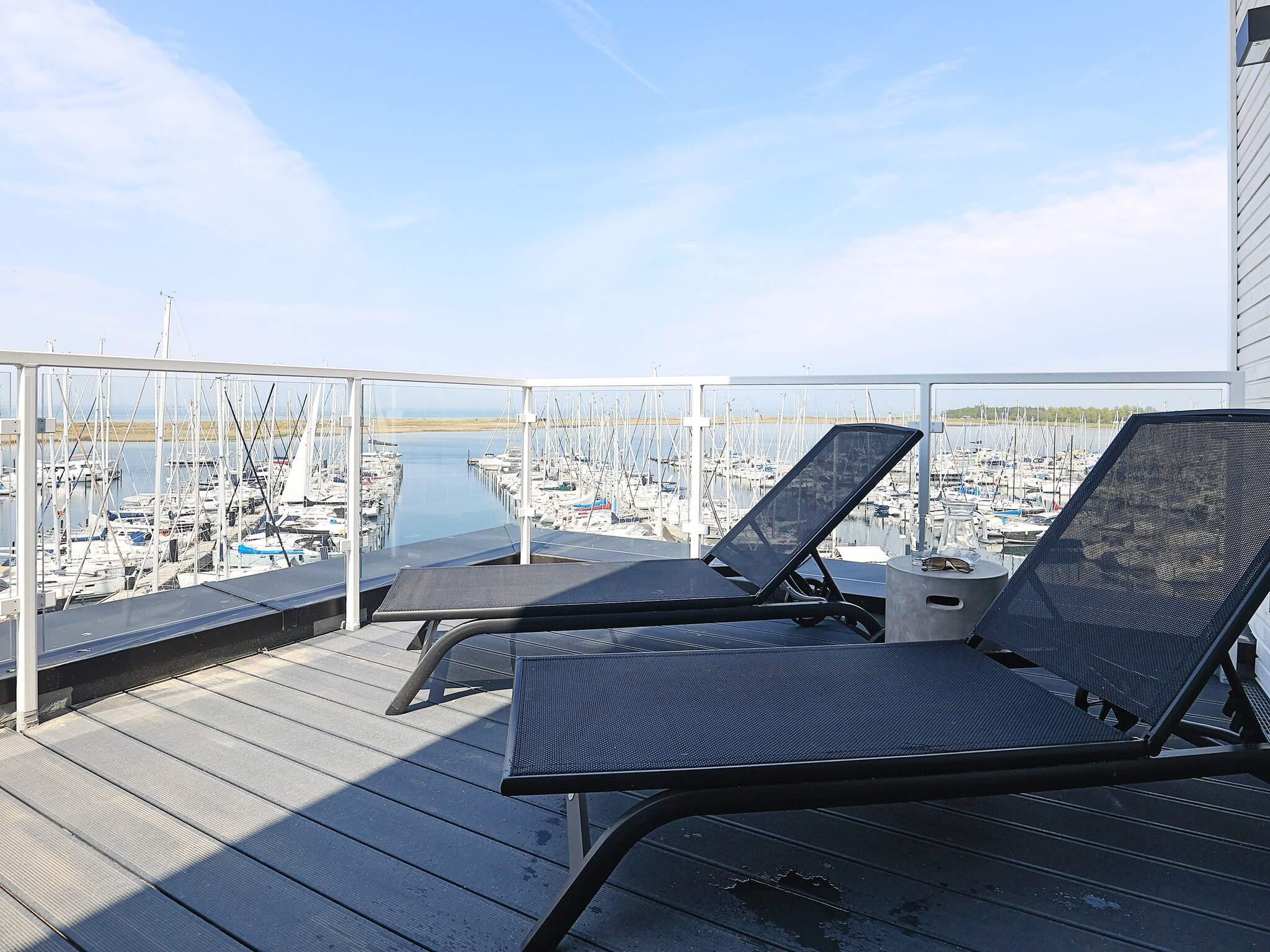 Penthouse-Ferienwohnung an der Hafenfront von Marina Wendtorf und mit Dachterrasse zum Wasser hin ausgestattet. Von Wohnzimmer und Dachterrasse bietet sich ein herrlicher Panoramablick über das Meer und den kleinen Ostseehafen.