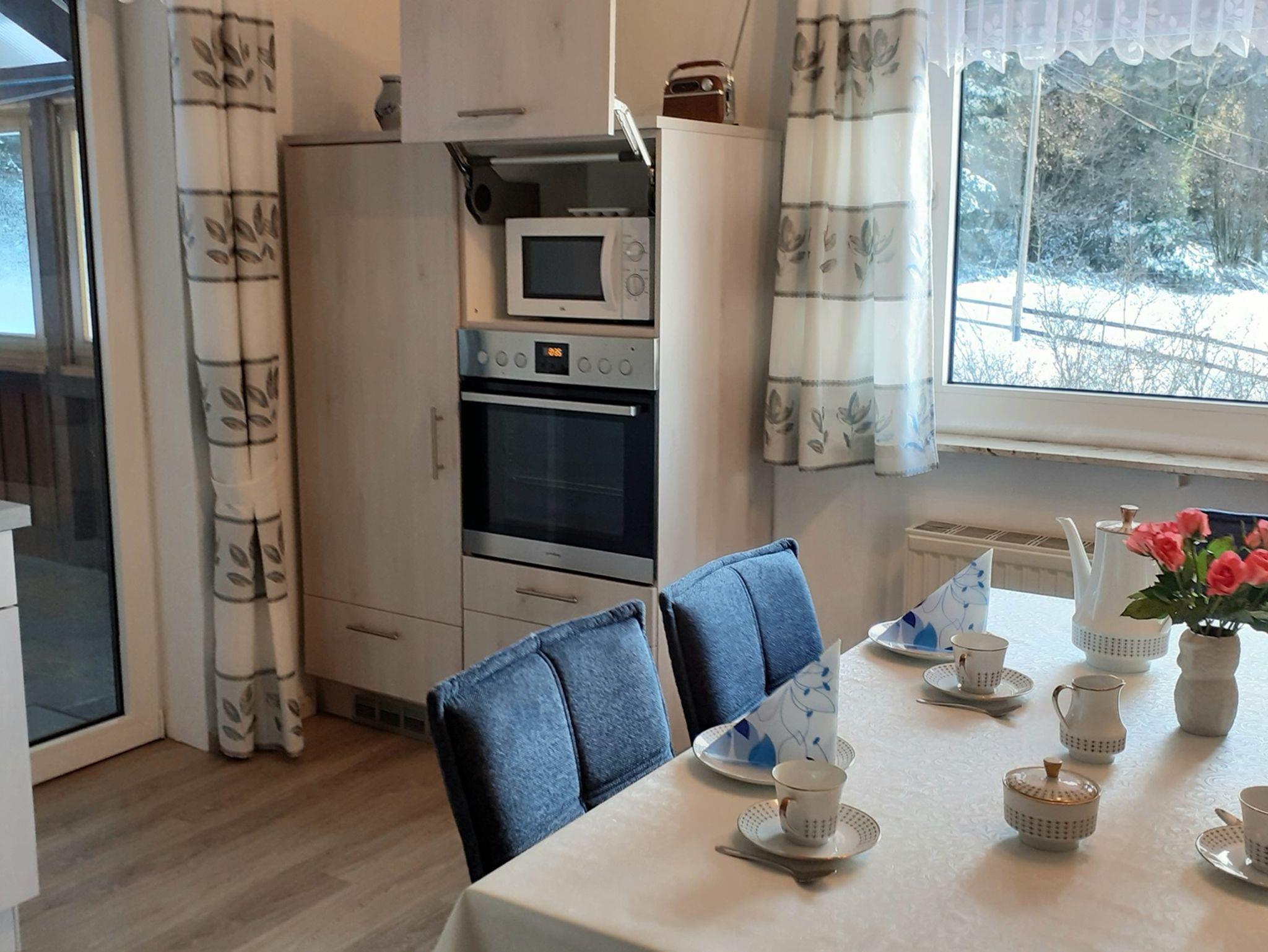 Die Küche ist mit Herd, Backofen, Mikrowelle, Wasserkocher, Kühlschrank mit Gefrierfach, Kaffeemaschine, Geschirrspüler, ausreichend Geschirr, Töpfe, Besteck und alles was man zum Kochen benötigt ausgestattet. Spülmittel und Geschirrtücher werden gestellt.