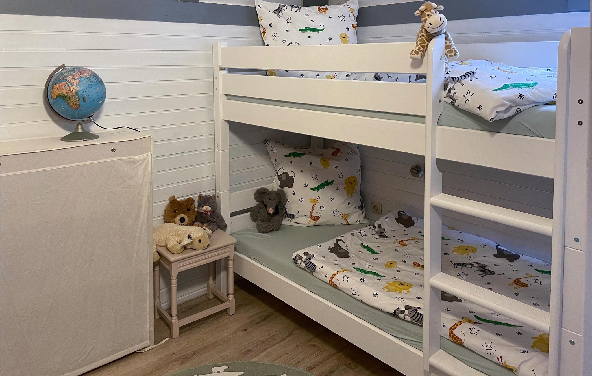 Schlafzimmer (nr. 1) - 1 Schlafmöglichkeit. (Einzelbett(en)). 2 Schlafmöglichkeiten. (Etagenbett).