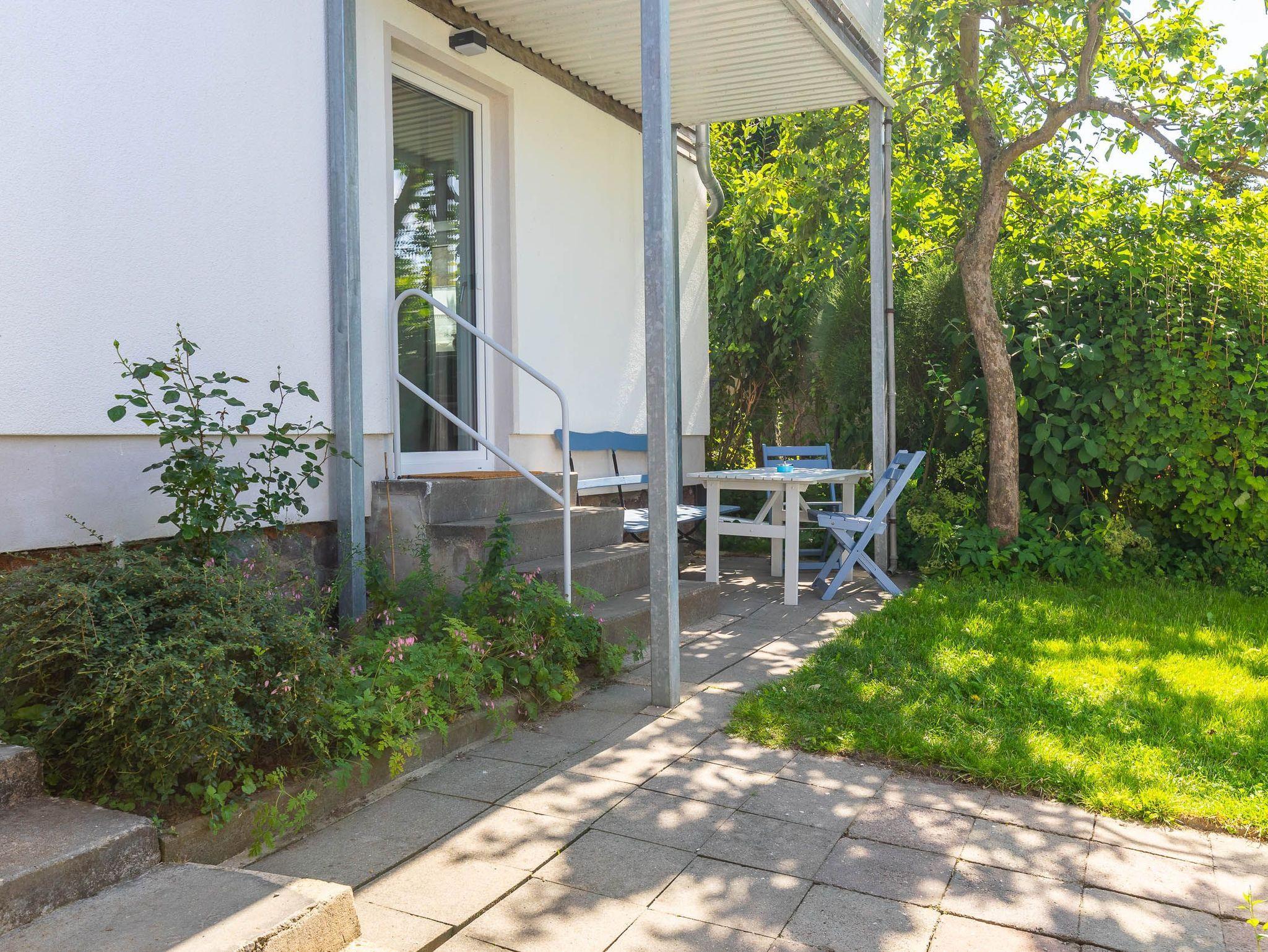 Einkaufsmöglichkeit, auch ein Bäcker für die Frühstücksbrötchen, gibt es direkt um die Ecke. Es kann das Wegerecht über das Nachbargrundstück genutzt werden für den direkten Zugang auf die Straße. Als Hauptzugang zum Ferienhaus empfehlen wir den Zugang über den Garten.