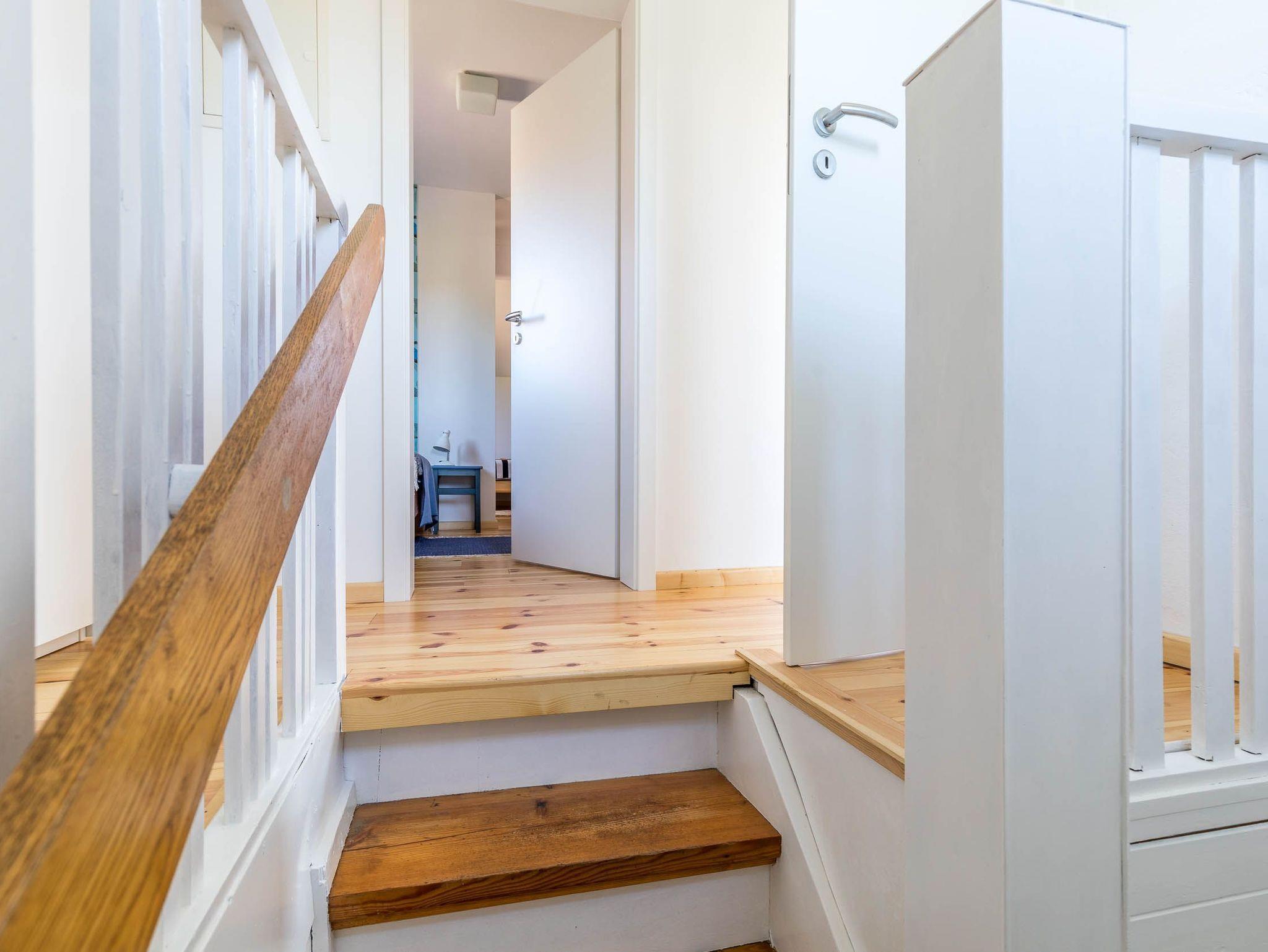 Das Haus bietet ca. 80 qm Wohnfläche auf zwei Etagen, sowie einen großen Balkon zur Südseite und zwei Terrassen.