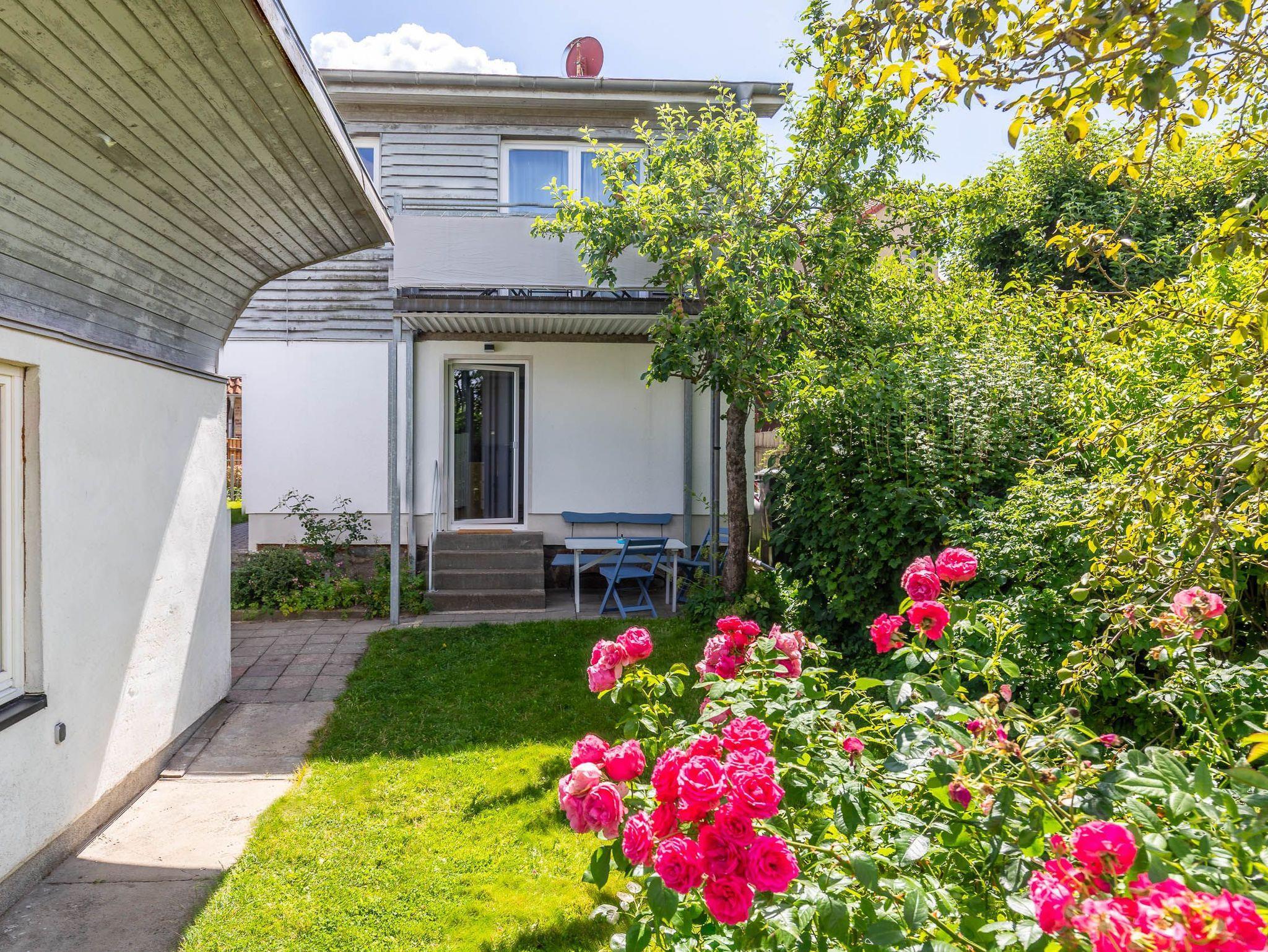 Ein Kamin sorgt für Gemütlichkeit, ein direkter Zugang führt auf eine kleine, überdachte Terrasse und in den großen Garten zur alleinigen Nutzung. Früchte, Kräuter und Blumen für den Eigenbedarf inklusive….