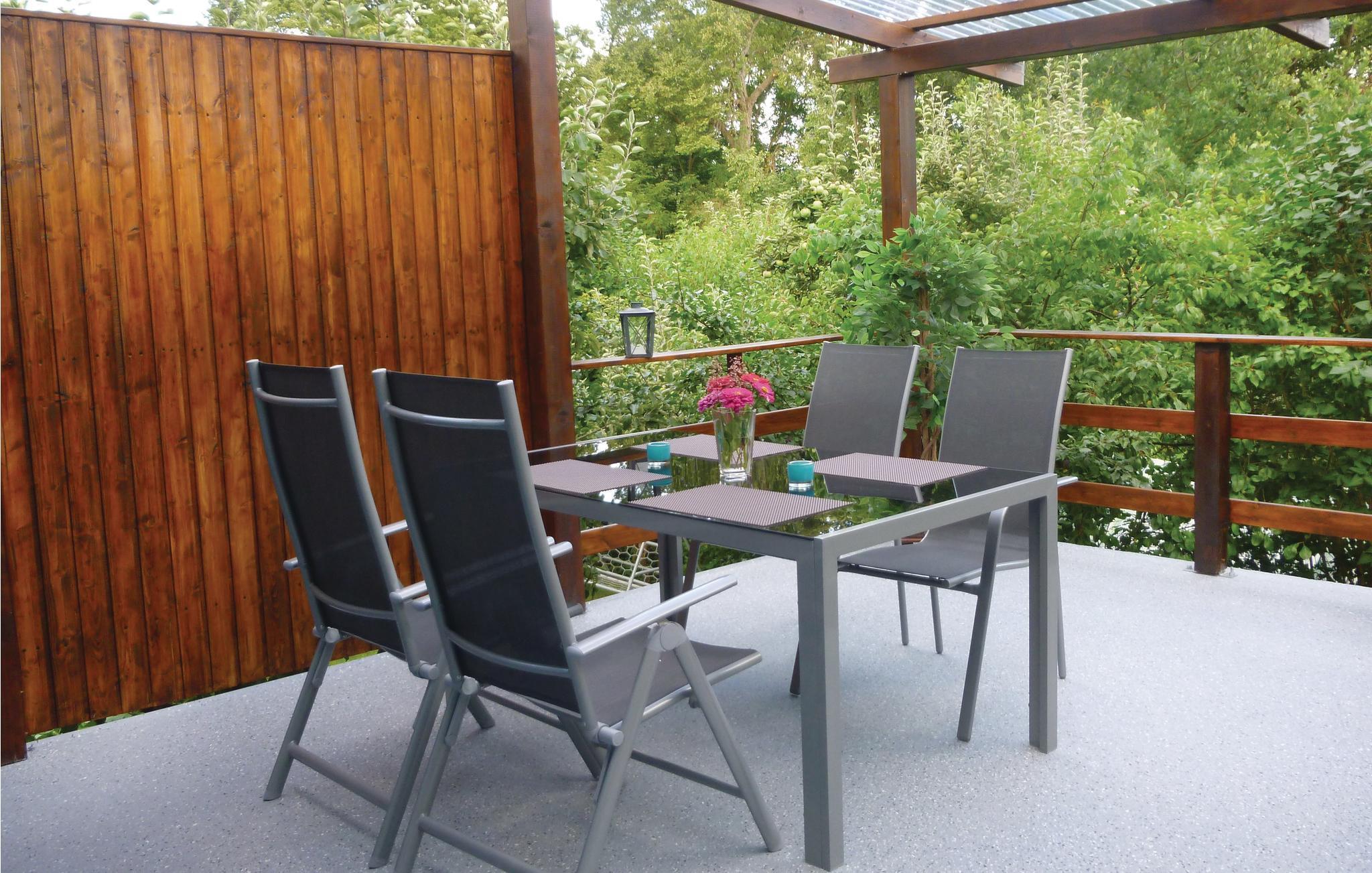 Das mit Liebe zum Detail eingerichtete Wohnzimmer, in dem sich eine Schlafcouch mit zwei weiteren Schlafgelegenheiten befindet, integriert eine sehr schöne Wohnküche mit einem Esstisch für vier Personen. Von hier aus gelangen Sie direkt auf die großzügige Terrasse auf der ihnen ausgewählte Garten- und Liegemöbel sowie ein Grill zur Verfügung stehen. Genießen Sie hier Ihre gemeinsamen Mahlzeiten und entspannen Sie an frischer Luft. Das hübsche Schlafzimmer verfügt über ein Doppelbett und das moderne Badezimmer über eine Dusche.