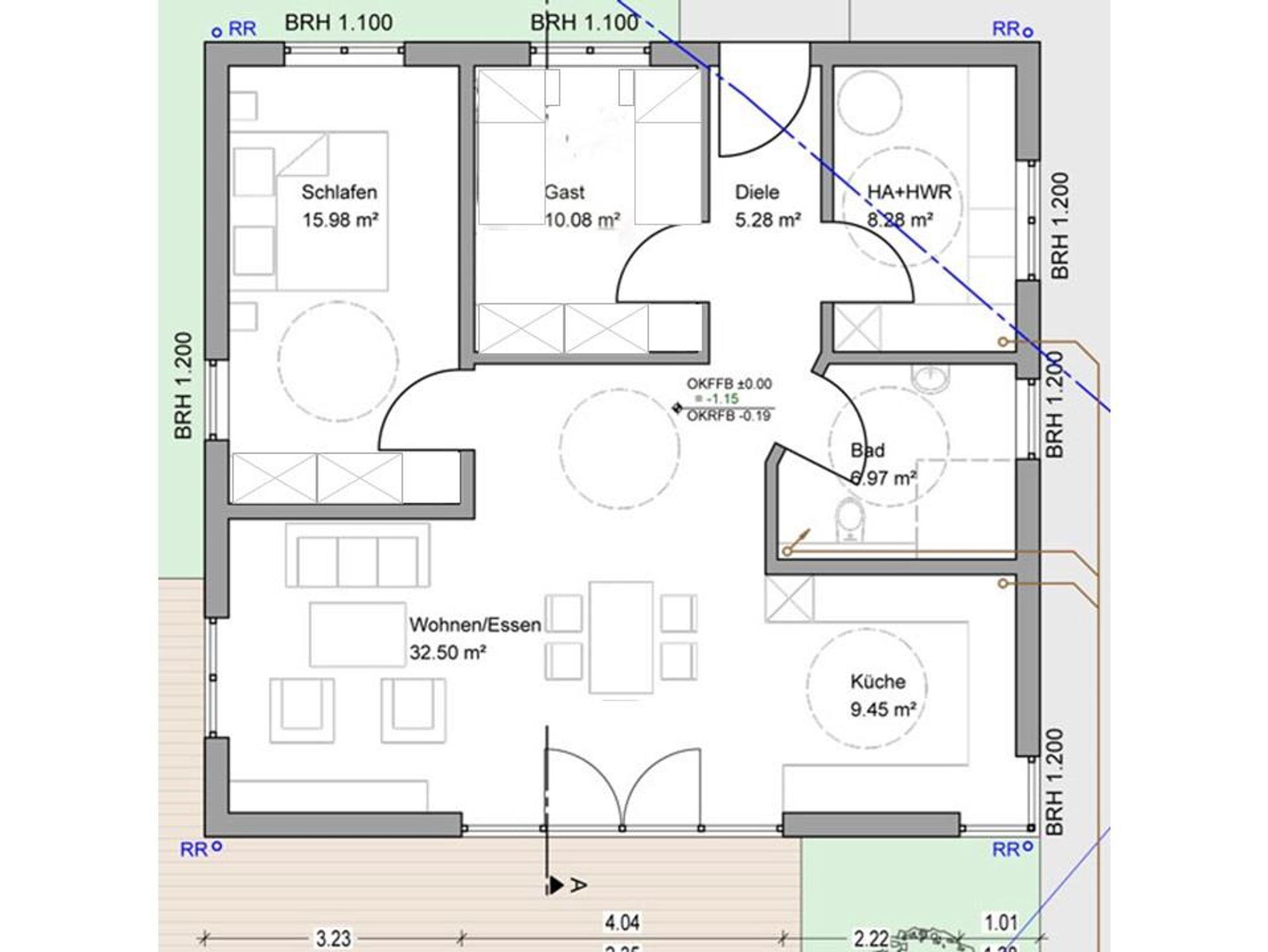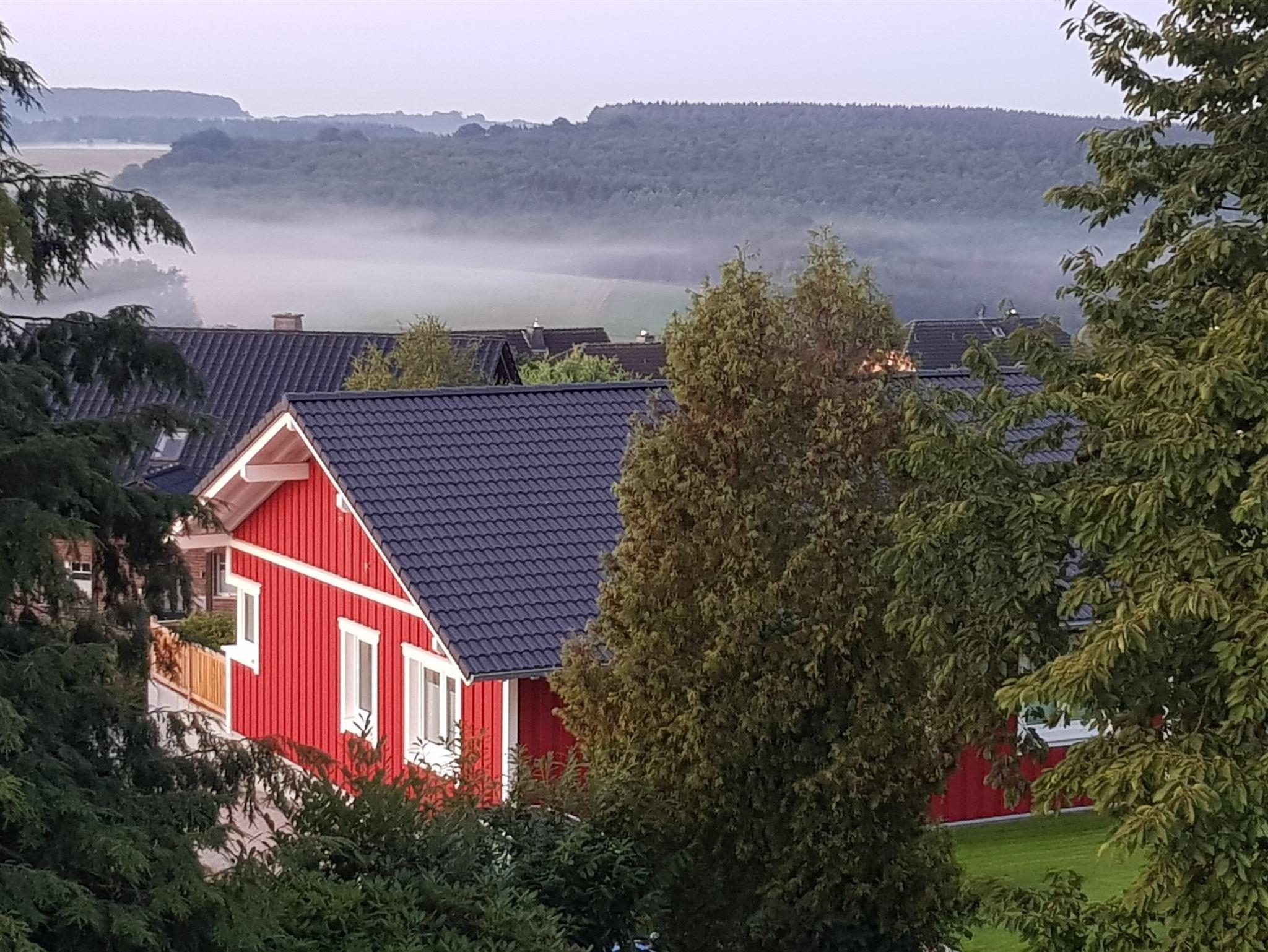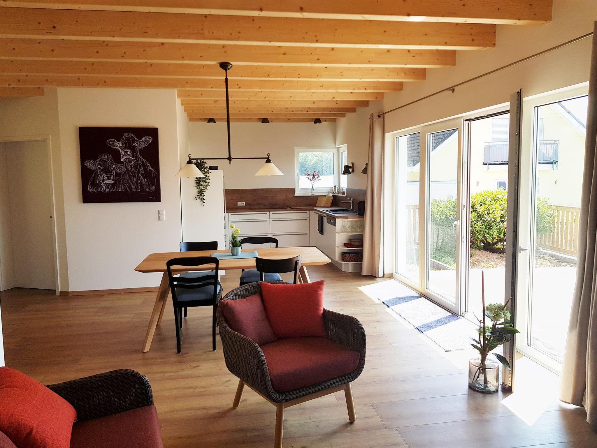 Das barrierefreie, ebenerdige, freistehende, 87 qm große Ferienhaus im skandinavischen Stil mit einer 40 qm großen Terrasse, ist umgeben von einem Garten. Die vier Meter lange Fensterfront zur Terrasse bietet Ihnen einen schönen Ausblick über das Wohngebiet und auf Felder und Wälder. Alle Räume haben eine separat regelbare Fußbodenheizung. 2019 wurde das Haus fertiggestellt. Lichtdurchflutete Räume voller Genuss und Leichtigkeit ermöglicht Ihnen Abstand zu nehmen von der Hektik und dem Stress des Alltags. Rollstuhl, Rollator.... sind ebenfalls willkommen. Die Türrahmen im Haus sind extra breit (1 Meter) und sehr hoch (2,10 Meter). Die Betten sind 2 Meter lang, haben kein Fussende und bieten damit auch für große Menschen bequem Platz. Auch die 40 qm große Terrasse ist barrierefrei zugänglich. Ein schnelles WLAN ist selbstverständlich im Haus und auch auf der Terrasse verfügbar. Via Internet-TV mit exzellenter Bildauflösung haben Sie Zugang zu allen gängigen Fernseh- sowie Radioprogrammen. Küche mit Vollausstattung und ein Hauswirtschaftsraum mit Waschmaschine, Wäschetrockner stehen Ihnen selbstverständlich kostenfrei zur Verfügung. Eine Ladestation für E-Autos und für E-Bikes stehen ab 2020 ebenfalls bereit. Das Bad bietet eine barrierefreie Dusche. Das Waschbecken ist ebenfalls barrierefrei, da ohne Unterschrank. Der Wandspiegel ist auch im Sitzen einsehbar.