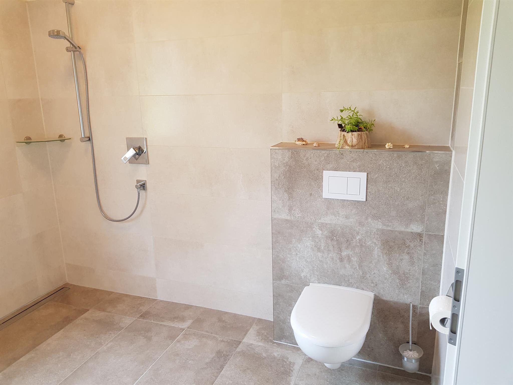 Das barrierefreie, ebenerdige, freistehende, 87 qm große Ferienhaus im skandinavischen Stil mit einer 40 qm großen Terrasse, ist umgeben von einem Garten. Die vier Meter lange Fensterfront zur Terrasse bietet Ihnen einen schönen Ausblick über das Wohngebiet und auf Felder und Wälder. Alle Räume haben eine separat regelbare Fußbodenheizung. 2019 wurde das Haus fertiggestellt. Lichtdurchflutete Räume voller Genuss und Leichtigkeit ermöglicht Ihnen Abstand zu nehmen von der Hektik und dem Stress des Alltags. Rollstuhl, Rollator.... sind ebenfalls willkommen. Die Türrahmen im Haus sind extra breit (1 Meter) und sehr hoch (2,10 Meter). Die Betten sind 2 Meter lang, haben kein Fussende und bieten damit auch für große Menschen bequem Platz. Auch die 40 qm große Terrasse mit elektrischer Markise ist barrierefrei zugänglich. Ein schnelles WLAN ist selbstverständlich im Haus und auch auf der Terrasse verfügbar. Via Internet-TV mit exzellenter Bildauflösung haben Sie Zugang zu allen gängigen Fernseh- sowie Radioprogrammen. Küche mit Vollausstattung und ein Hauswirtschaftsraum mit Waschmaschine, Wäschetrockner stehen Ihnen selbstverständlich kostenfrei zur Verfügung. Eine Ladestation für E-Autos und für E-Bikes stehen voraussichtlich ab Sommer/Herbst 2021 ebenfalls bereit. Das Bad bietet eine barrierefreie Dusche. Das Waschbecken ist ebenfalls barrierefrei, da ohne Unterschrank. Der Wandspiegel ist auch im Sitzen einsehbar.