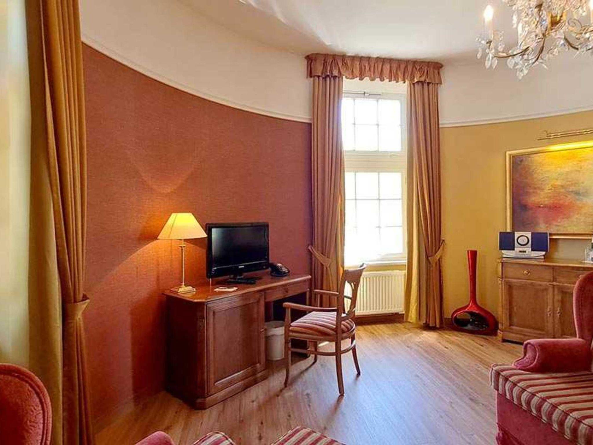 Ca. 38 m2, separater Wohn- und Schlafraum, Komfortable Sitzecke mit Schlafcouch, Dusche / Badewanne, Haartrockner, Pflege-/ Kosmetikprodukte, Schreibtisch, Arbeitsplatz, Steckdose, LED-TV mit Fernbedienung, Sky, WLAN, Telefon, schalldichte Fenster