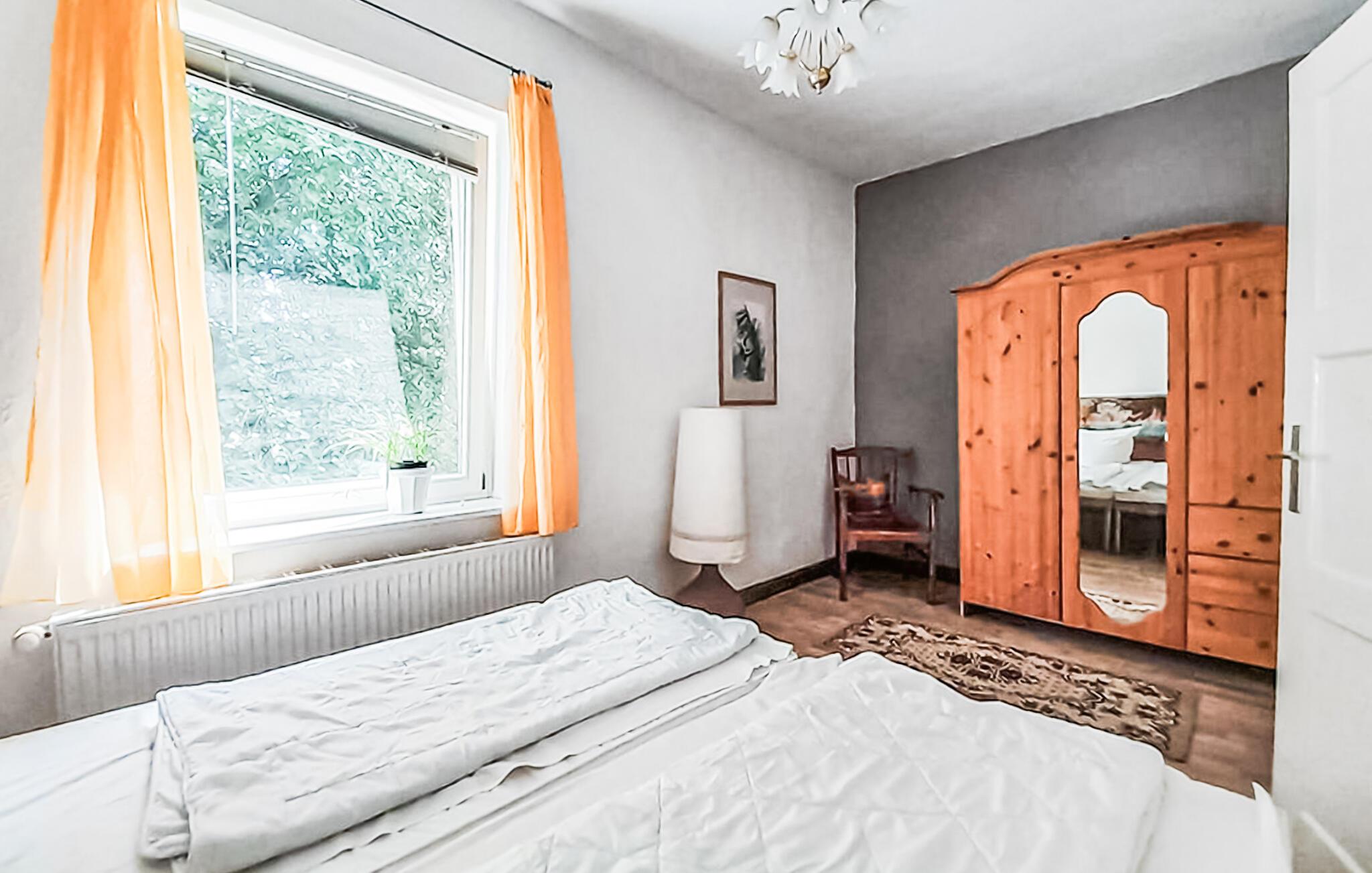 Die 65 qm große Ferienwohnung 4 bis max. 5 Personen befindet sich im Parterre eines Mehrfamilienhauses direkt neben dem Schloss und der ehemaligen Gutsanlage Blücherhof. Sie ist ausgestattet mit einem Wohnraum (Polstermöbel, SAT-TV, Esstisch), 2 Schlafräumen (1 x Doppelbett, 1 x 2 Betten, Schlafcouch), einer separaten Küche (Essplatz, E-Herd mit Backofen, Kühlschrank, div. Küchengeräte), einem Bad (Badewanne/WC) und Zentralheizung. Auf dem großflächigen Grundstück stehen eine möblierte Sitzecke im Freien mit Grillmöglichkeit und PKW-Stellplätze zur Verfügung. WLAN ist ebenfalls vorhanden.Im Gesamtpreis enthalten sind Wasser, Energie und Endreinigung. Bettwäsche und Handtücher können mitgebracht oder vor Ort gemietet werden.