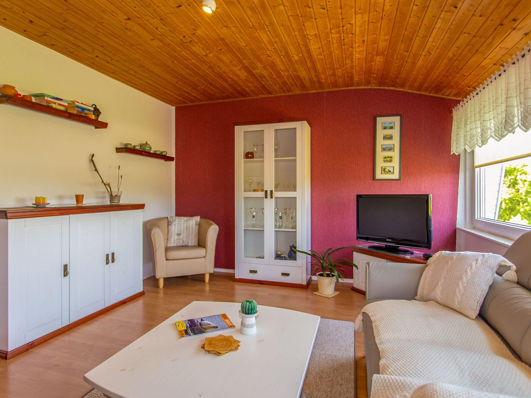 Die Wohnung verfügt über einen Wohnraum mit Couchecke, TV-Anlage und Anbauwand sowie eine Wohnküche mit abgetrennter Schlafecke (bei Aufbettung (kostenpflichtig) steht ein 2. Schlafzimmer mit zwei Einzelbetten zur Verfügung). Der Küchenbereich enthält alle notwendigen Küchenutensilien wie Backofen, Kühlschrank, Toaster etc. und einen geräumigen Esstisch für 4 Personen. Zur täglichen Körperpflege steht ein DU-Bad zur Verfügung.