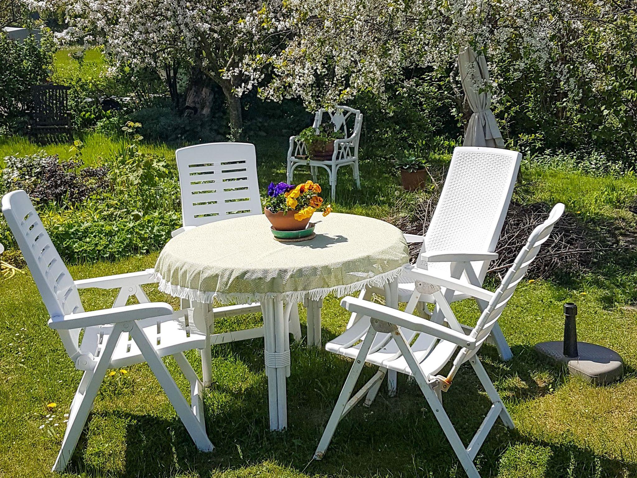 Zur Ferienwohnung gehört weiterhin ein PKW -Stellplatz, eine Sitzecke im Garten mit Grillmöglichkeit.