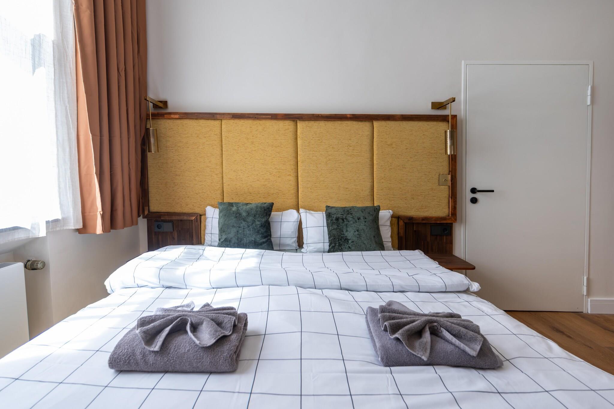 Offene Küche(Esstisch, Wasserkocher, Toaster, Kochherd, Espressomaschine, Mikrowelle, Kühlschrank), Wohn-/Schlafzimmer(Doppelbett, TV, Sitzecke, Netflix), Schlafzimmer(Doppelbett), Badezimmer(Dusche, Waschbecken, Toilette, Föhn), Waschmaschine(gegen Gebühr), Parkplatz, Kinderbett