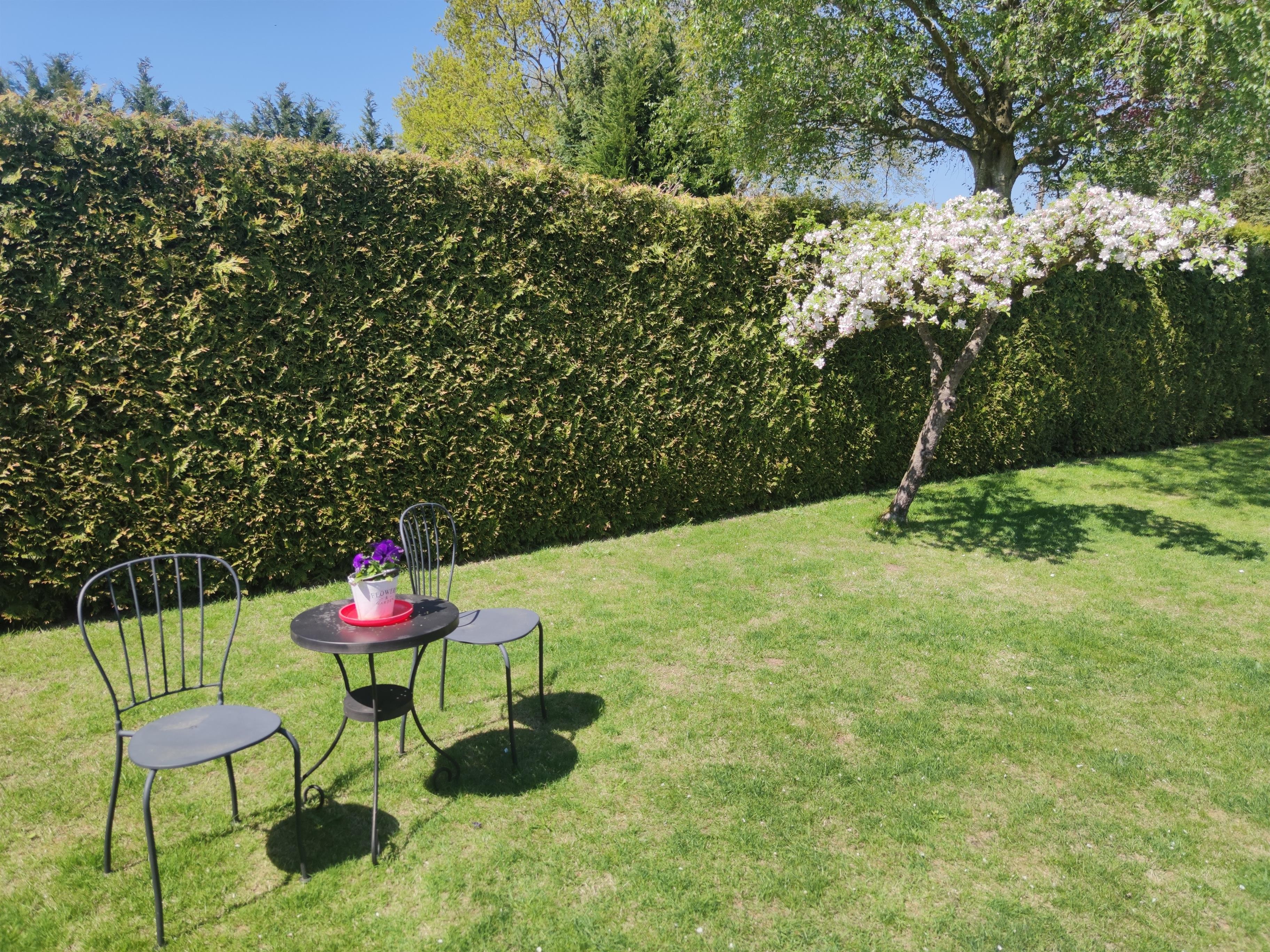 Im großen, gepflegten Garten stehen Ihnen die Liegewiese mit Gartenmöbeln und eine Grillmöglichkeit am Blockhaus zur Verfügung.