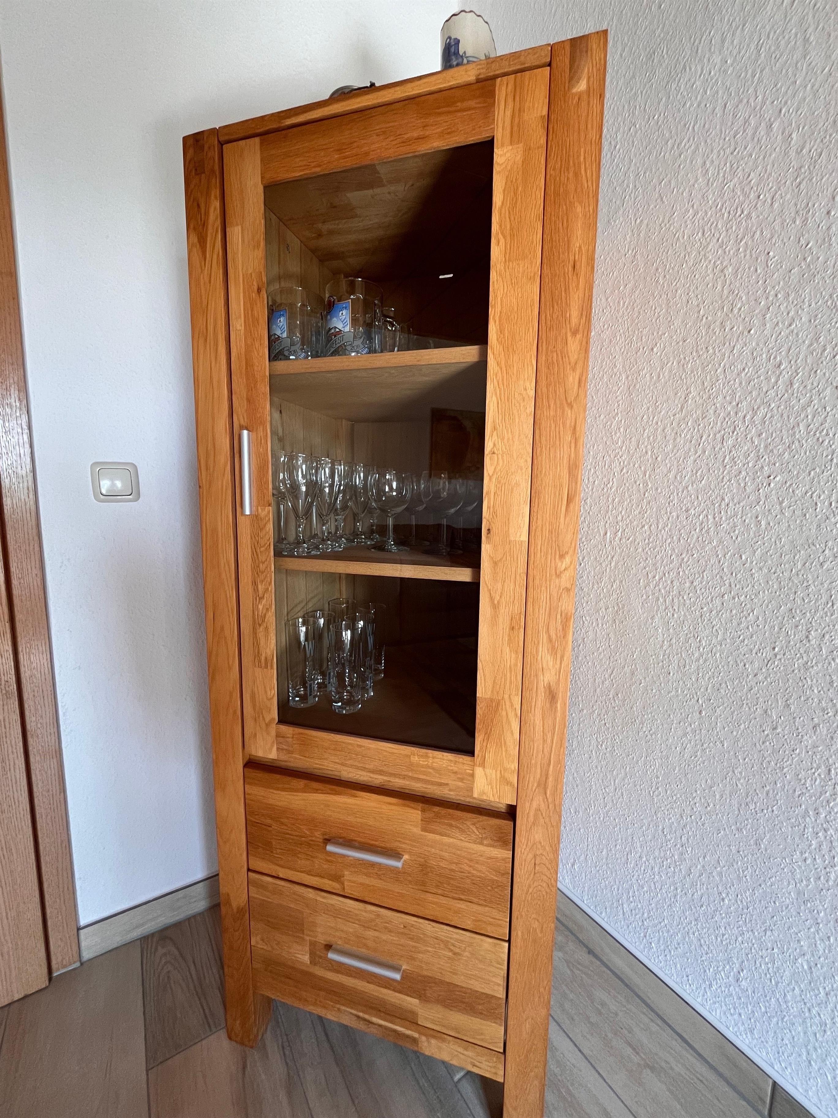 Das Wohnzimmer ist mit seinen Naturholzmöbeln und der großen Sitzecke das gemütliche Zentrum der Wohnung. Die Sitzecke kann bei Bedarf zum Schlafsofa umgebaut werden und der moderne Flachbildfernseher sorgt für angenehme TV-Abende.