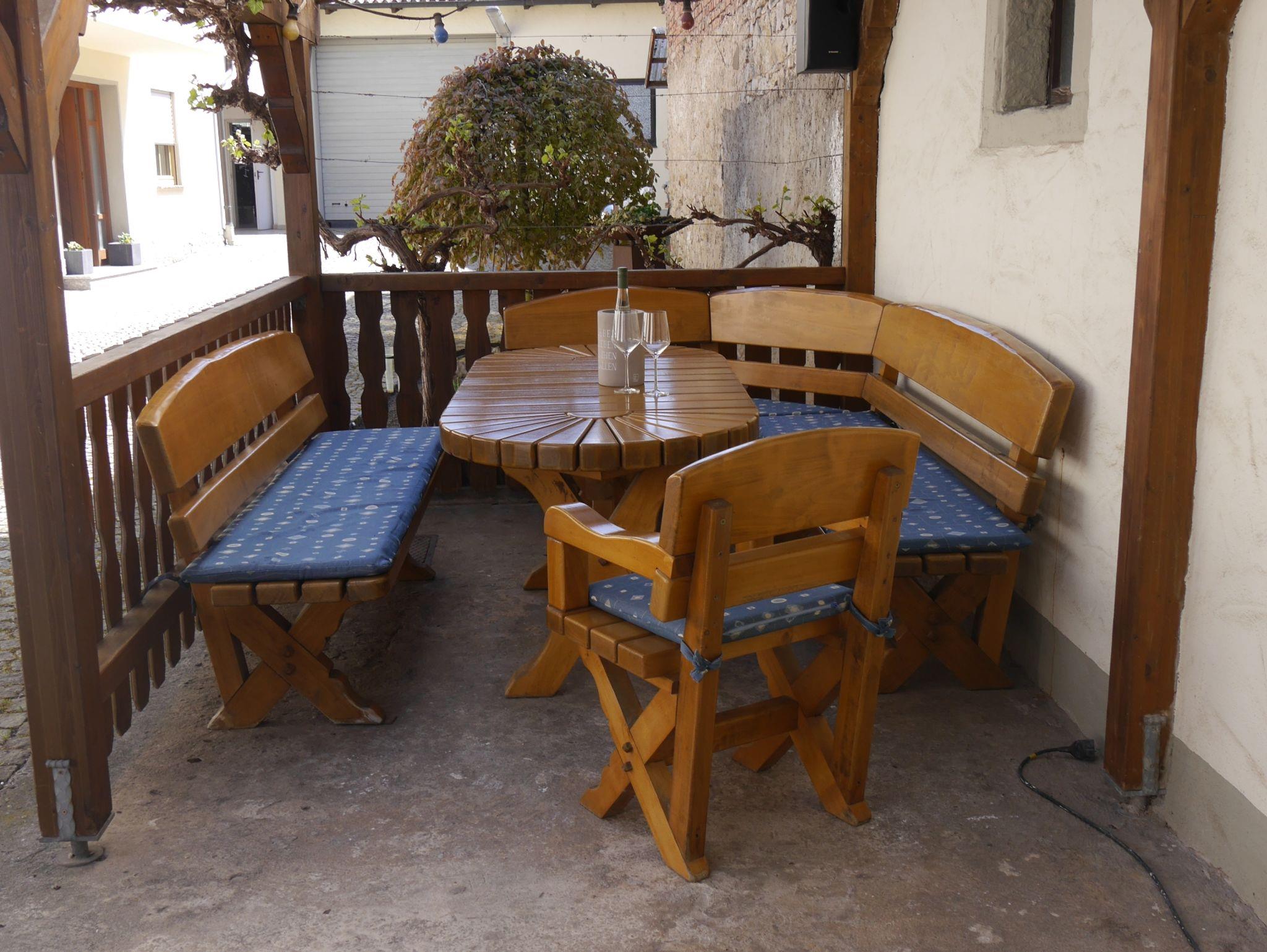 Dusche sowie WC.Im Hof befindet sich eine Pergola mit einer gemütlichen Sitzgruppe.