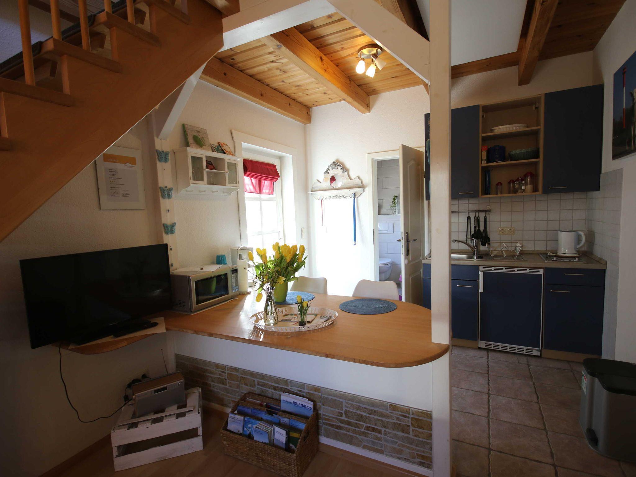 Die ca. 30 m² große Ferienwohnung hat einen separaten Eingang, ein Wohnzimmer, ein Schlafzimmer, eine Küchenzeile und ein Duschbad.