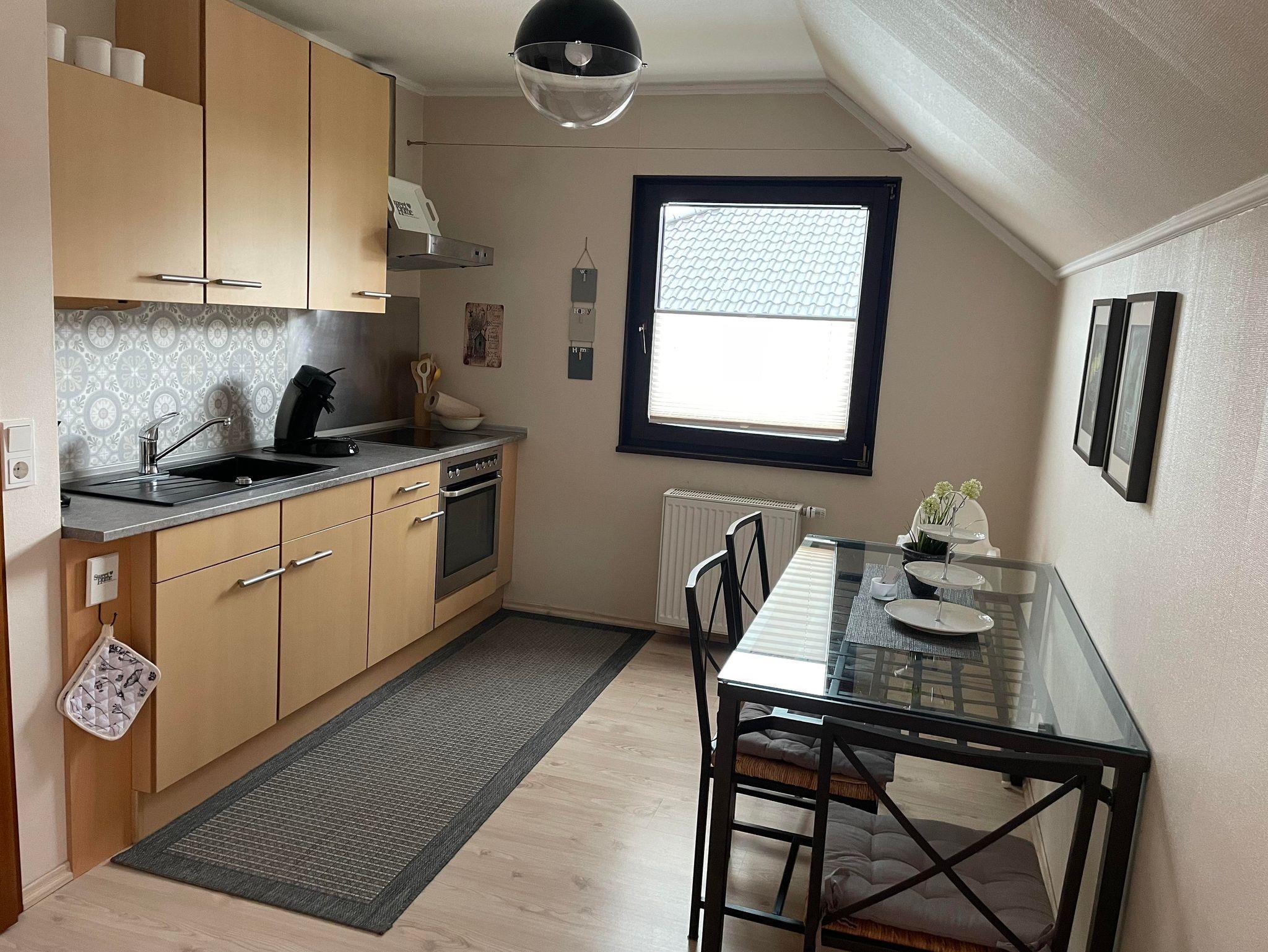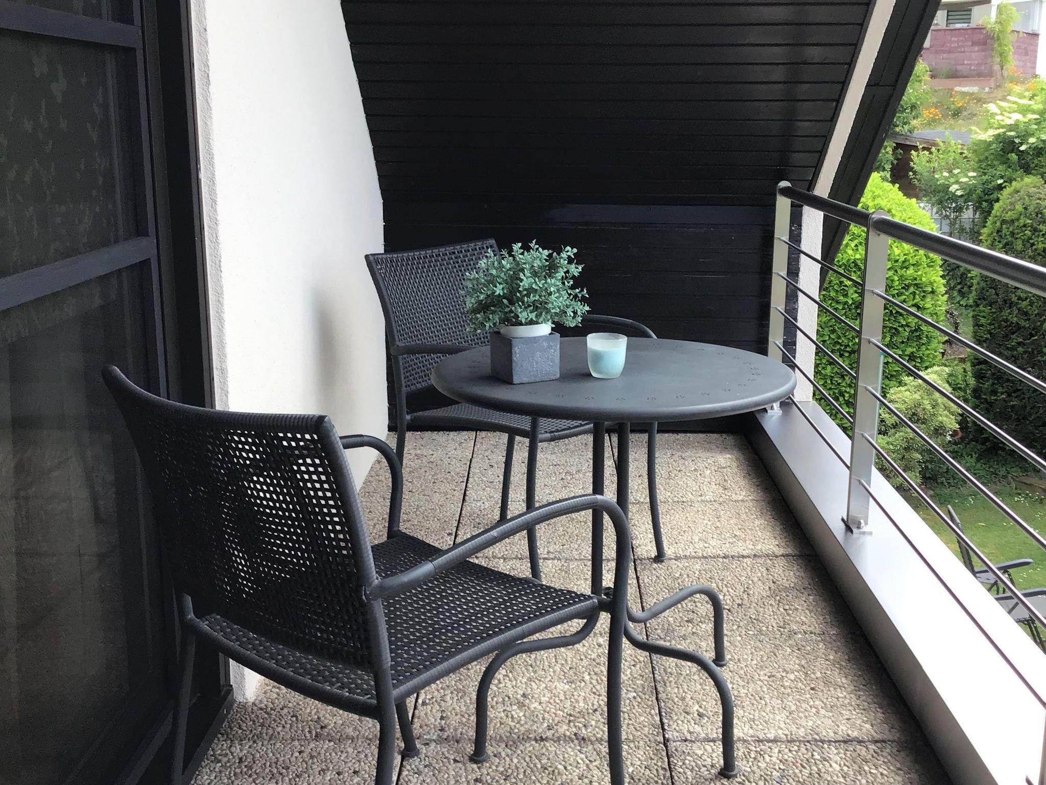 Die ruhige und gemütlich ausgestattete Ferienwohnung mit Blick auf die Weinberge, ist komplett und mit Liebe zum Detail eingerichtet. Die Ferienwohnung verfügt über einen großen Südbalkon, ein neues Badezimmer sowie eine zweckmäßig eingerichtete Küche mit Mikrowelle, Kaffeemaschine, Kühlschrank, Herd und Backofen, Musikanlage.