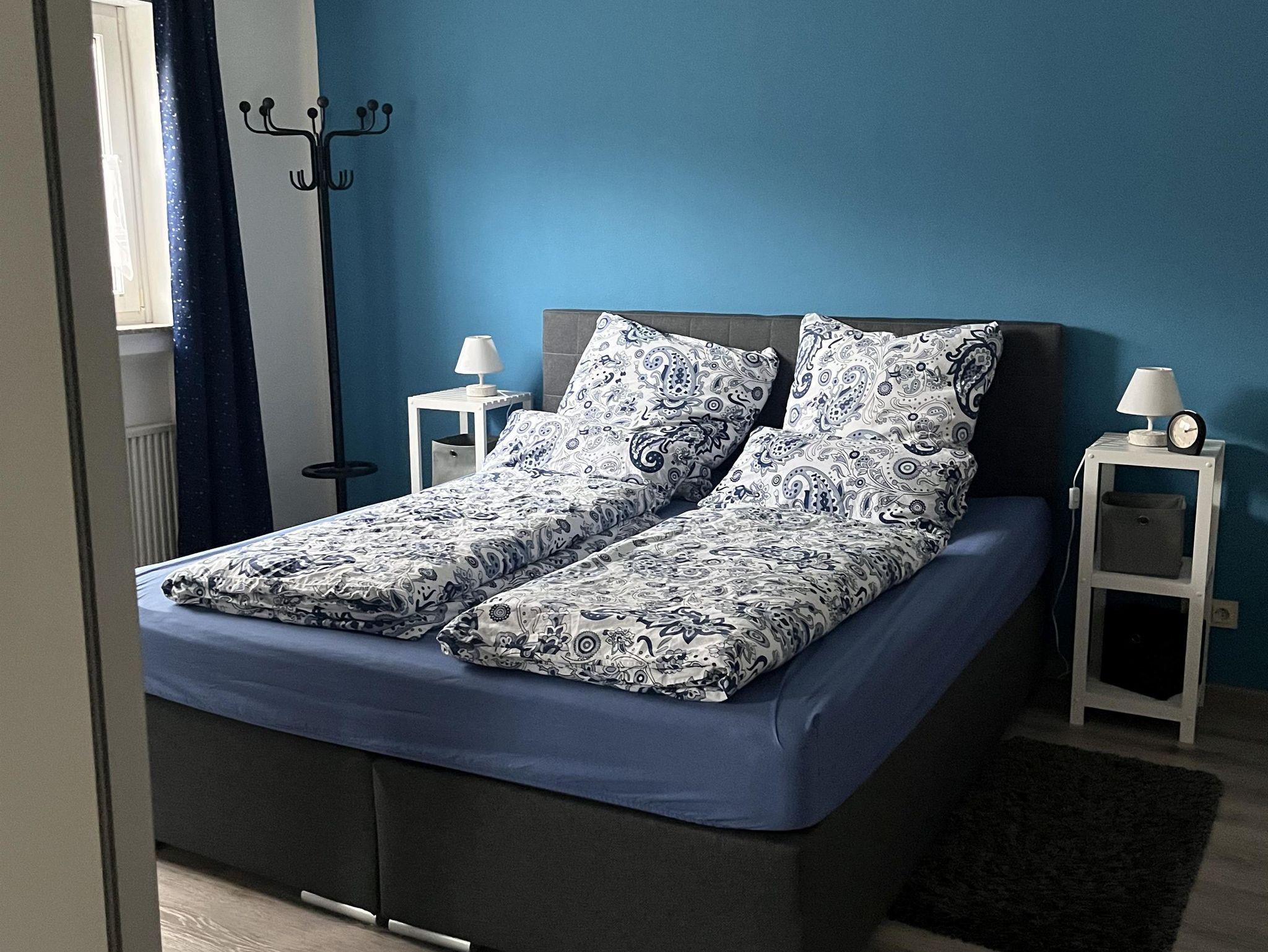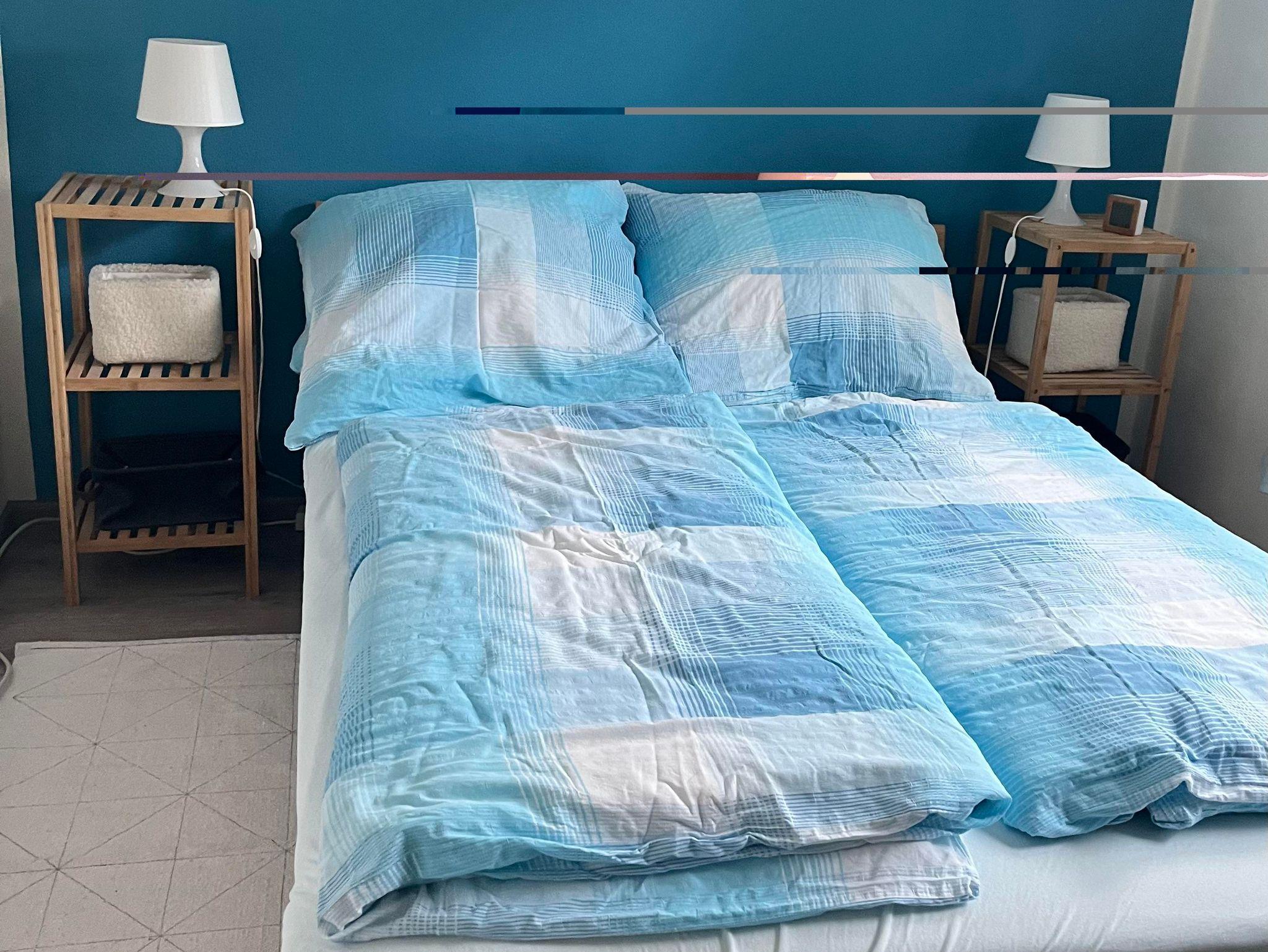 2 sep. Doppelschlafzimmer (1 x SZ mit Boxspringbett 1,80 x 2,00 m und 1 x SZ mit Bett 1,40 x 2,00 m), Esszimmer, Wohnzimmer, Küche mit Einbauküche und Geschirrspülmaschine, Bad mit großer Badewanne, kleiner Abstellraum.