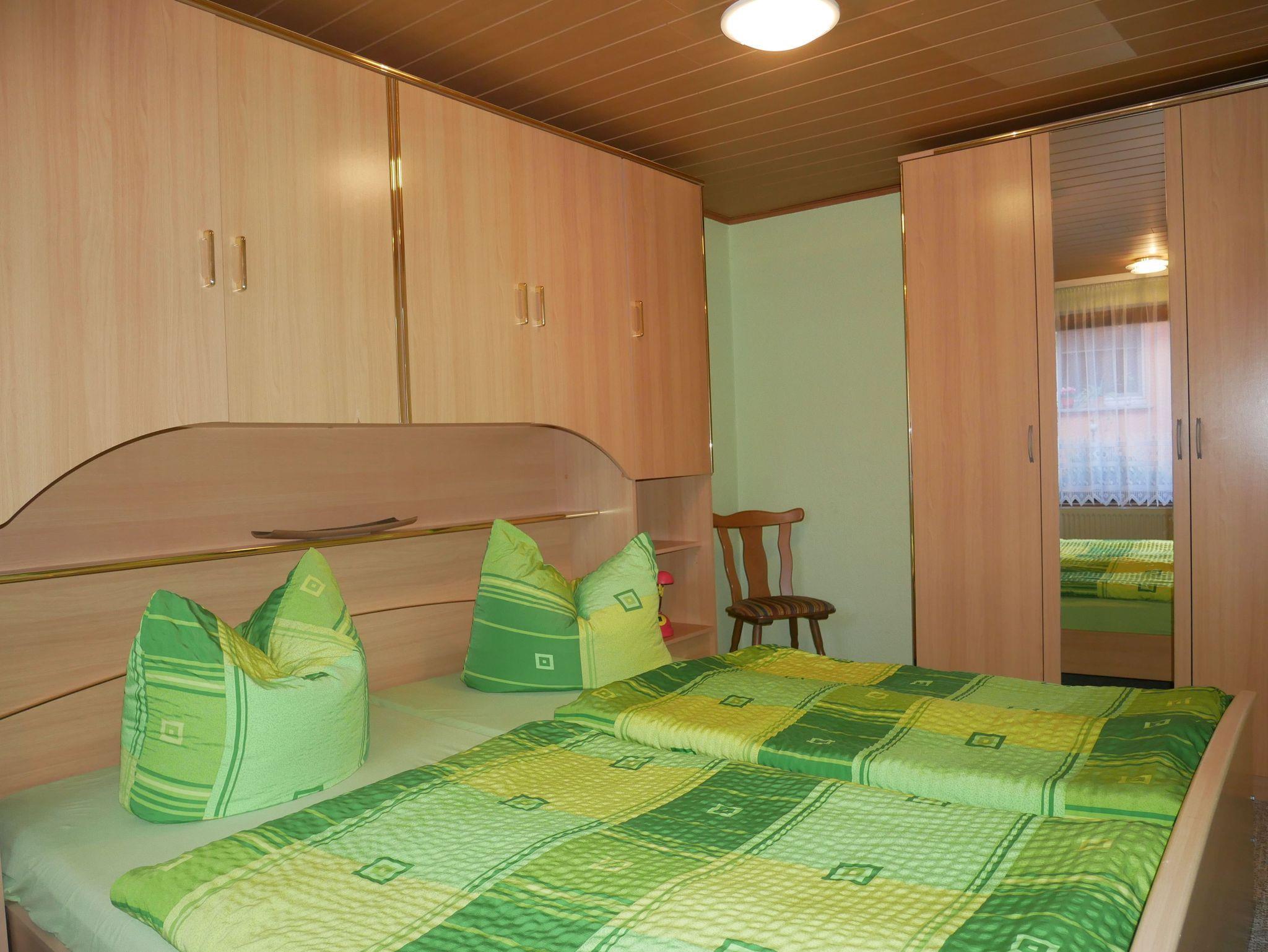 Die Ferienwohnung 1 ist ca. 40m² groß und verfügt über ein Wohnzimmer mit einem Sofa, Flat-TV und Radio. Die offene Küche ist ausgestattet mit einem Mini-Backofen, 2-Platten-Herd, Kühlschrank mit Gefrierfach, Kaffeemaschine, Toaster und Wasserkocher. Das große Schlafzimmer verfügt über ein Doppelbett und über einen Kleiderschrank. Im kleineren Schlafzimmer befindet sich ein Einzelbett. Das Badezimmer ist mit einer ebenerdigen Dusche ausgestattet. Vor der Wohnung befindet sich eine möblierte Terrasse. Zusätzlich finden Sie auf dem Grundstück eine überdachte Laube, die zum Grillen oder gemütlichen Beisammensein geeignet ist.