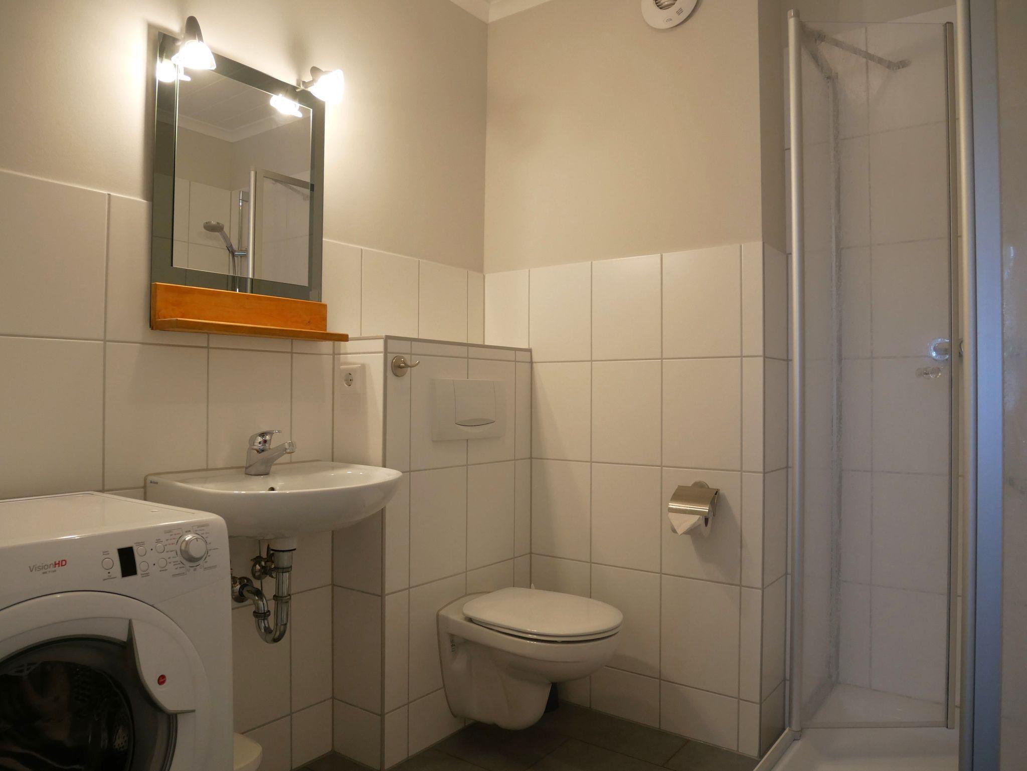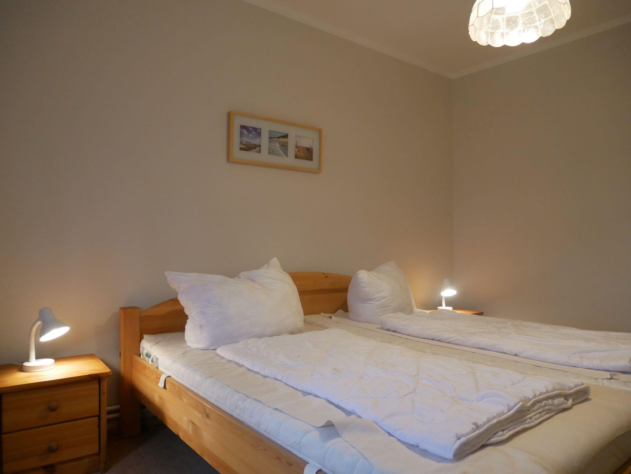 Das erste der beiden Schlafzimmer ist mit einem Doppelbett und einem Kleiderschrank ausgestattet, das zweite Schlafzimmer mit einem Doppelbett und einem Schlafsofa. Das zweite Schlafzimmer ist ein Durchgangszimmer (zur Küche und zum zweiten Badezimmer) und liegt zur Straßenseite. Die separate Küche ist mit Backofen, Cerankochfeld, Mikrowelle und Kühlschrank mit Gefriermöglichkeit, einer Spülmaschine sowie Kaffeemaschine, Wasserkocher und Toaster ausgestattet. Das erste der beiden Bäder verfügt über eine Badewanne mit Duschabtrennung und WC. Das zweite Badezimmer ist mit Dusche/WC und Waschmaschine ausgestattet.