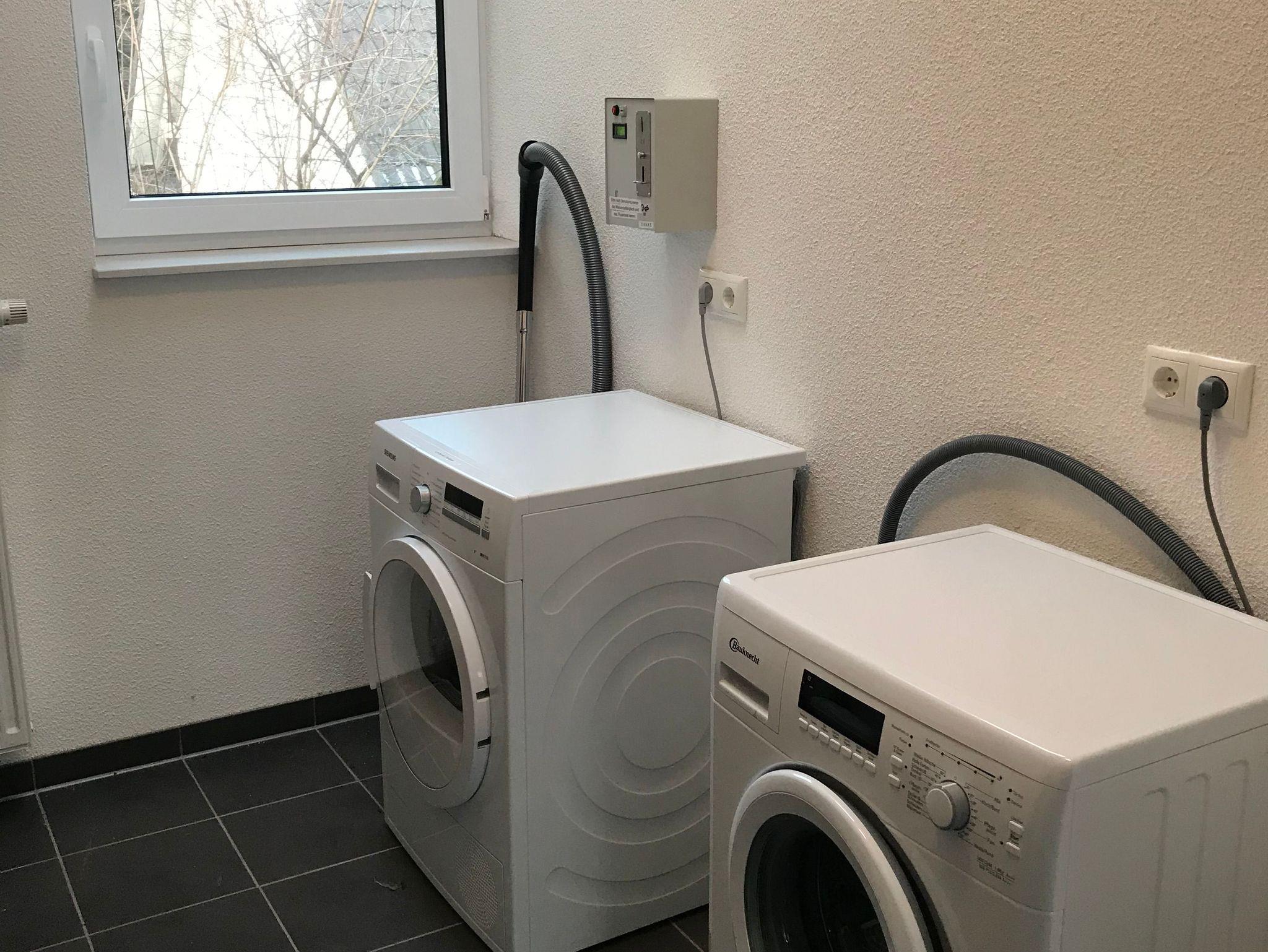 Neben dem Haus befindet sich ein großer abschließbarer Fahrradabstellraum. Desweiteren im Objekt ein Hauswirtschaftsraum, wo Sie Waschmaschine und Trockner über einen Münzautomat nutzen können.