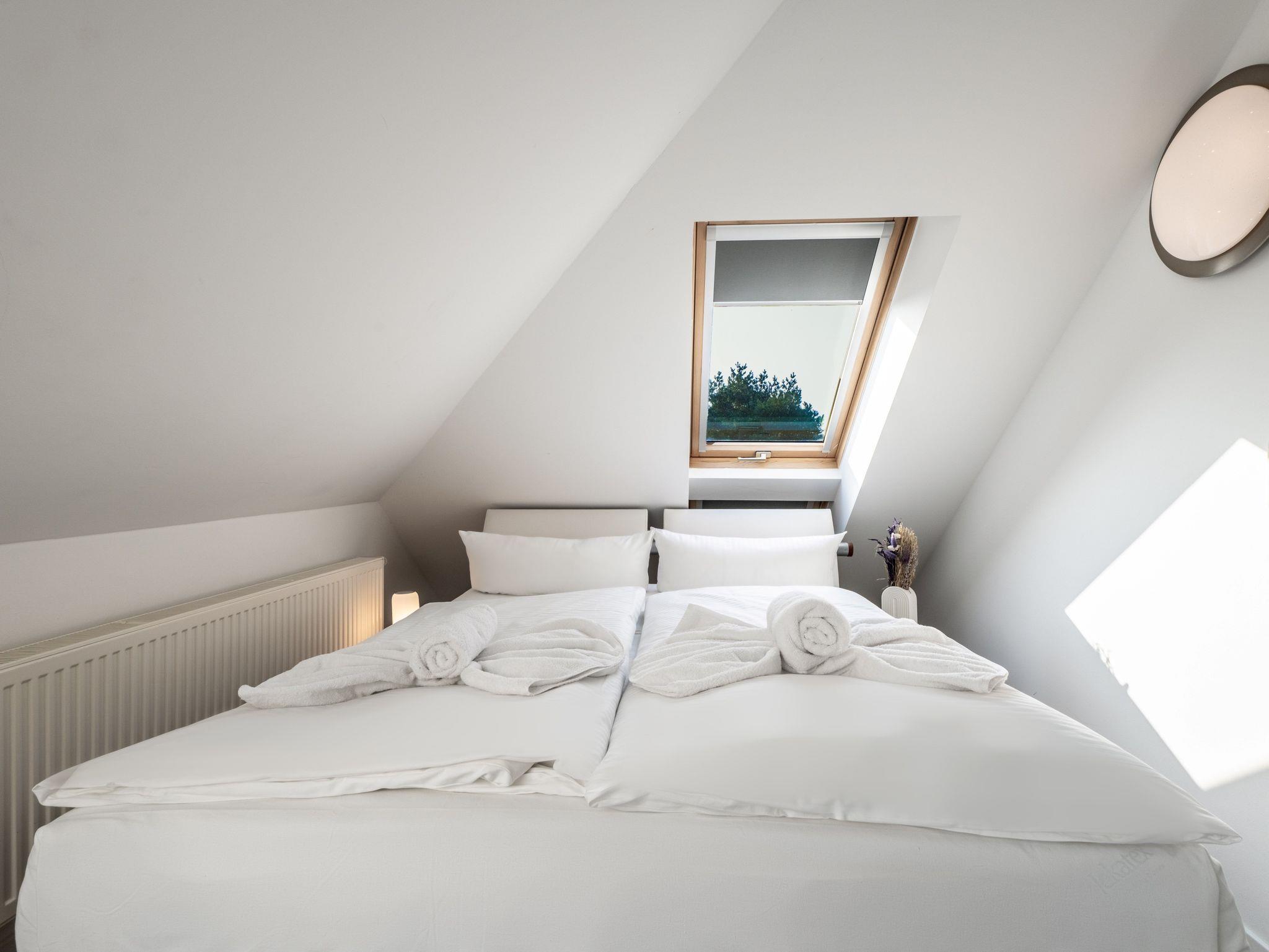 Ein Urlaub mit Weitblick? Dann sind Sie in unserer kuscheligen Wohnung Wasser mit 52 qm genau richtig! Platz ist für vier Personen in einem Schlafzimmer (Doppelbett 140x200) und in einem Wohn/Schlafzimmer (Doppelbett 140x200). Das Haus Fünf Elemente wurde im Jahr 2022 vollständig ausgebaut und modernisiert. Abseits des Trubels und mit wunderbarem Blick durch drei große Lichtbänder auf das Achterwasser lädt die Wohnung zum Entspannen, Lesen und Genießen ein. Auch die Ostsee ist nur einen kleinen Spaziergang von 10 Minuten entfernt. Koserow ist ein Geheimtipp für alle, die sich die Vorzüge des Ostseeurlaubs wünschen und gleichzeitig etwas mehr Ruhe suchen. Mit einem ausgiebigen Spaziergang im Wald, entlang der beeindruckenden Steilküste können Sie Ihren Ausflug abrunden. Wie wäre es zum Ausklang des Tages mit einem gemütlichen Abend am Grill oder an der Feuerschale? Unser weitläufiges Grundstück hält alles für Sie bereit. Bei uns bleiben keine Wünsche offen. Kommen Sie mit dem Auto oder vielleicht ganz sportlich mit dem Fahrrad? Für beides haben wir selbstverständlich einen Platz auf dem Grundstück. Das ist noch längst nicht alles. Sie finden bei uns kostenfreies WLAN, Bio-Kamin, Smart-TV mit Streaming Funktion, Geschirrspüler, Kühlschrank mit Gefrierfach, Backofen mit Ceran-Kochfeld, Mikrowelle, Wasserkocher, Kaffeemaschine, Toaster, Föhn, Babybett, Babyhochstuhl und vieles mehr.