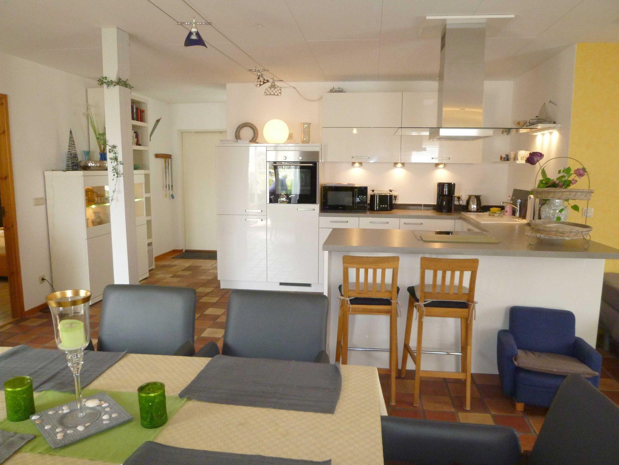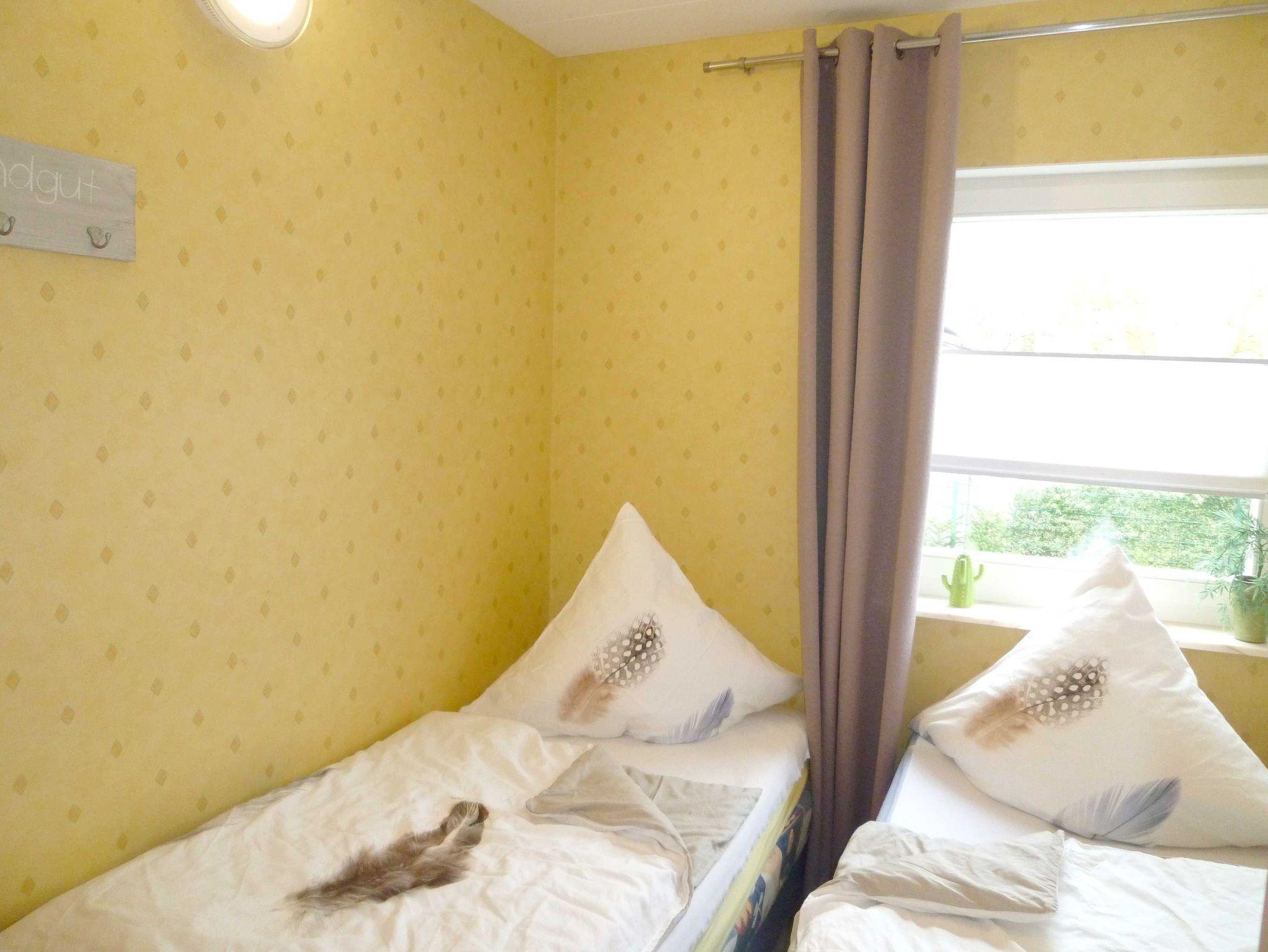 Es steht Ihnen ein hochmodernes Schlafzimmer (Buche/blau) mit Doppelbett und ein zweites Schlafzimmer mit 2 Einzelbetten zur Verfügung. Im Wohnbereich sind 2 weitere Aufbettungen in der Relax-Ecke im Wohnzimmer oder in der Veranda möglich.