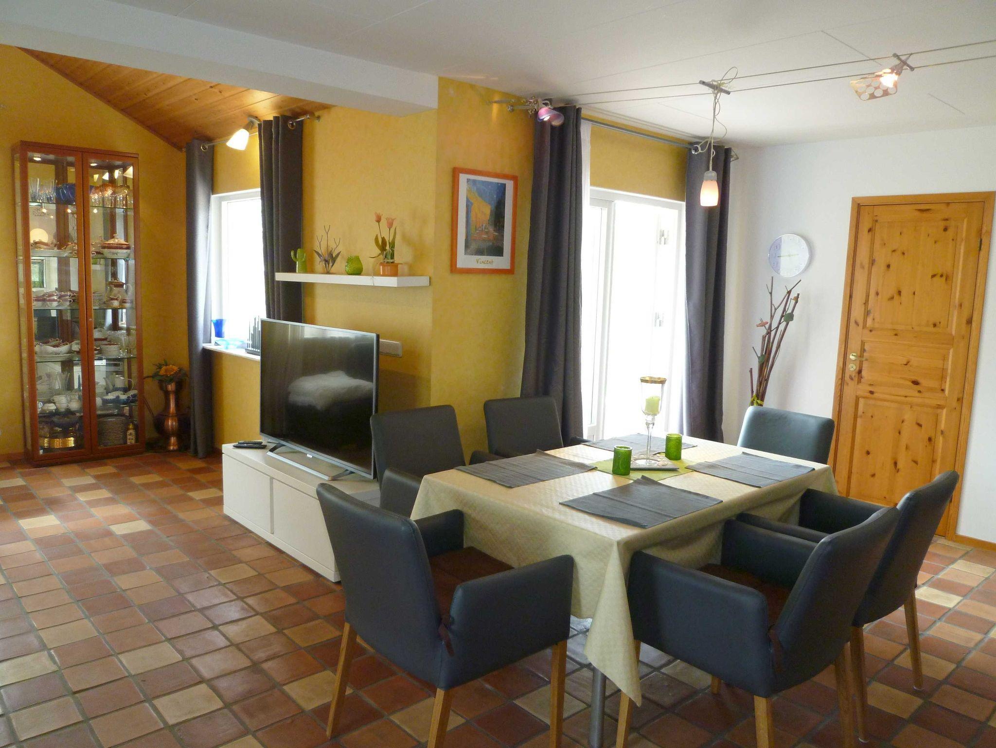 Das gemütliche und großzügige Schwedenhaus verfügt über 84 m² Wohnfläche auf einer Ebene und eignet sich sowohl für einen entspannten Urlaub zu zweit als auch für einen Urlaub mit der Familie oder mehreren Personen. Ein Highlight ist die große, sehr geschützte Terrasse in Süd-Westlage mit Markise und exklusiven, gemütlichen Terrassenmöbeln sowie zwei Rollliegen. Großer, offener Wohnbereich mit heller Veranda. Komfortable Ledergarnitur in elegantem, modernem Design mit Schlaffunktion in der Veranda. Gemütliche Relax-Ecke in einer Nische im Wohnzimmer (weitere Schlafmöglichkeit). Hochwertige Küche in modernem, frischem Design mit Esstheke, Ceran-Kochfeld und kompletter Ausstattung. Die moderne Ledergarnitur in anthrazit und der große 55'' LCD-Fernseher mit Ambilight LED-Hintergrundbeleuchtung sowie eine Stereoanlage runden den großzügigen Wohnbereich ab. Dieser verfügt über einen wunderschönen Cotto-Boden in warmen Farben. Ein elektrisches Kaminfeuer mit tollem Flammeneffekt sorgt für eine kuschelige Atmosphäre.