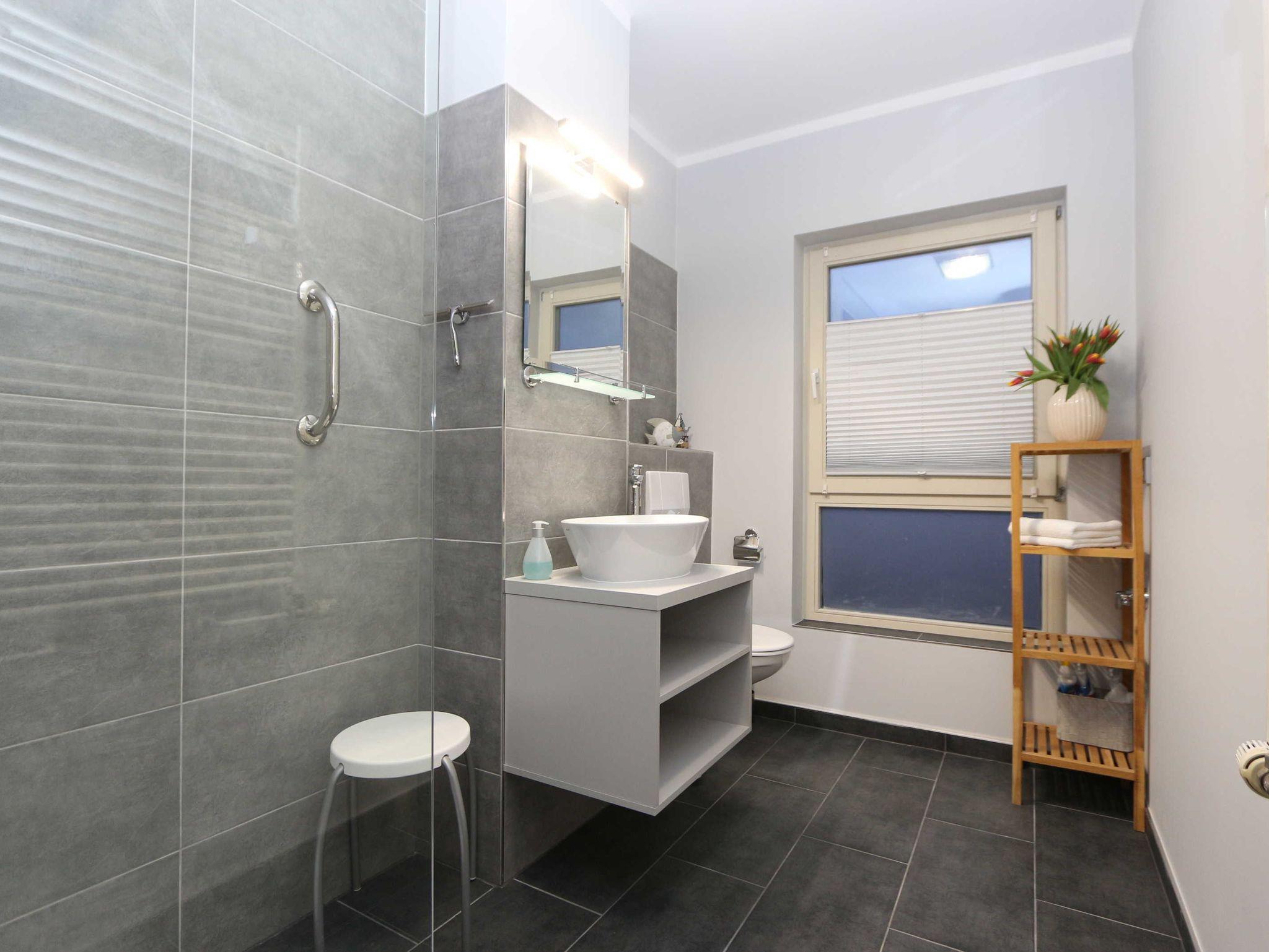 • Bad mit Fenster, WC, Dusche und Handtuchtrocknerheizkörper.