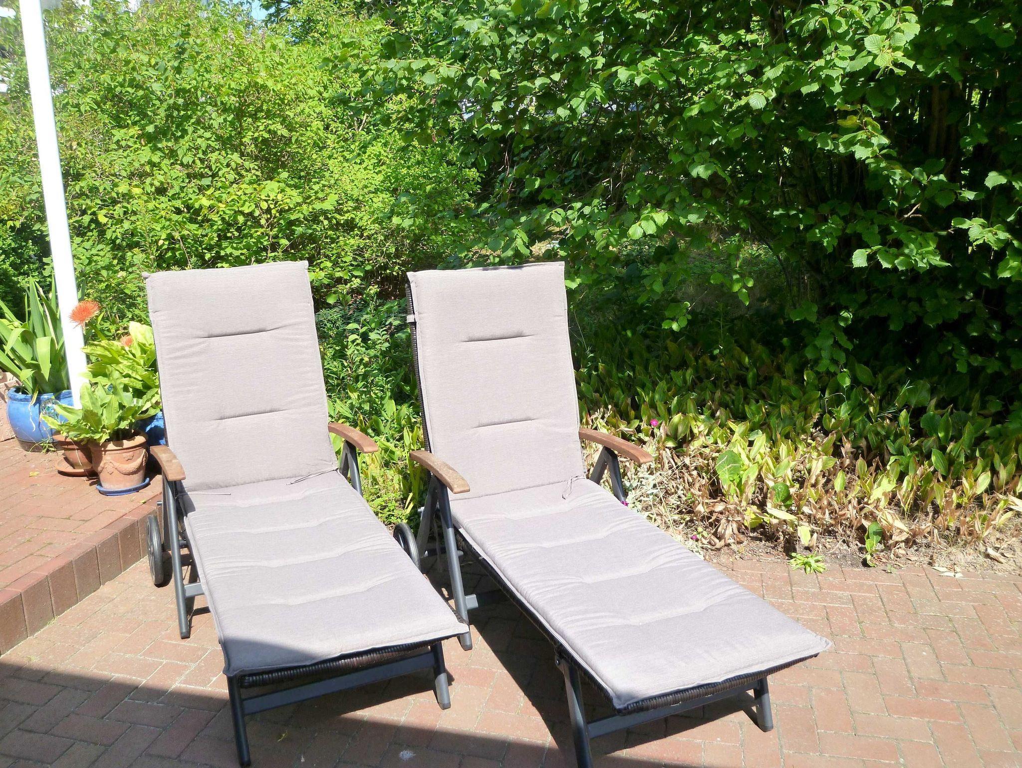 Komfortables Einfamilienhaus auf 1300 m² großem Grundstück, Wohnzimmer mit moderner Ledergarnitur aus echtem Leder und mit Relaxfunktion, Essbereich aus echtem Leder, der Wohnbereich hat einen südländischen Flair mit direktem Ausgang zur geschützten und nicht einsehbaren Süd-Westterrasse, zwei sehr komfortabel ausgestattete und großzügige Schlafzimmer, großzügiger (26 m²) Wintergarten in wundervoller Natur mit 55 Fernseher (Smart-TV) - ein idealer, geschützter Platz bei jedem Wetter. Hochmoderne und sehr chice Küche mit jeglichem Komfort und direktem Ausgang zur großen überdachten Terrasse, Duschbad in maritimem Design mit besonderem Flair, hochwertige Miele Waschmaschine, herrschaftliche Raumhöhe von 2,90 m, aus allen Räumen Zugang zum Wintergarten bzw. zur großen überdachten Terrasse, weitere sehr geschützte Terrasse, extrem ruhige Lage, 3 Gehminuten zum Strand und Konzertplatz. Auf dem Grundstück befindet sich nebenan die Villa Romantica.