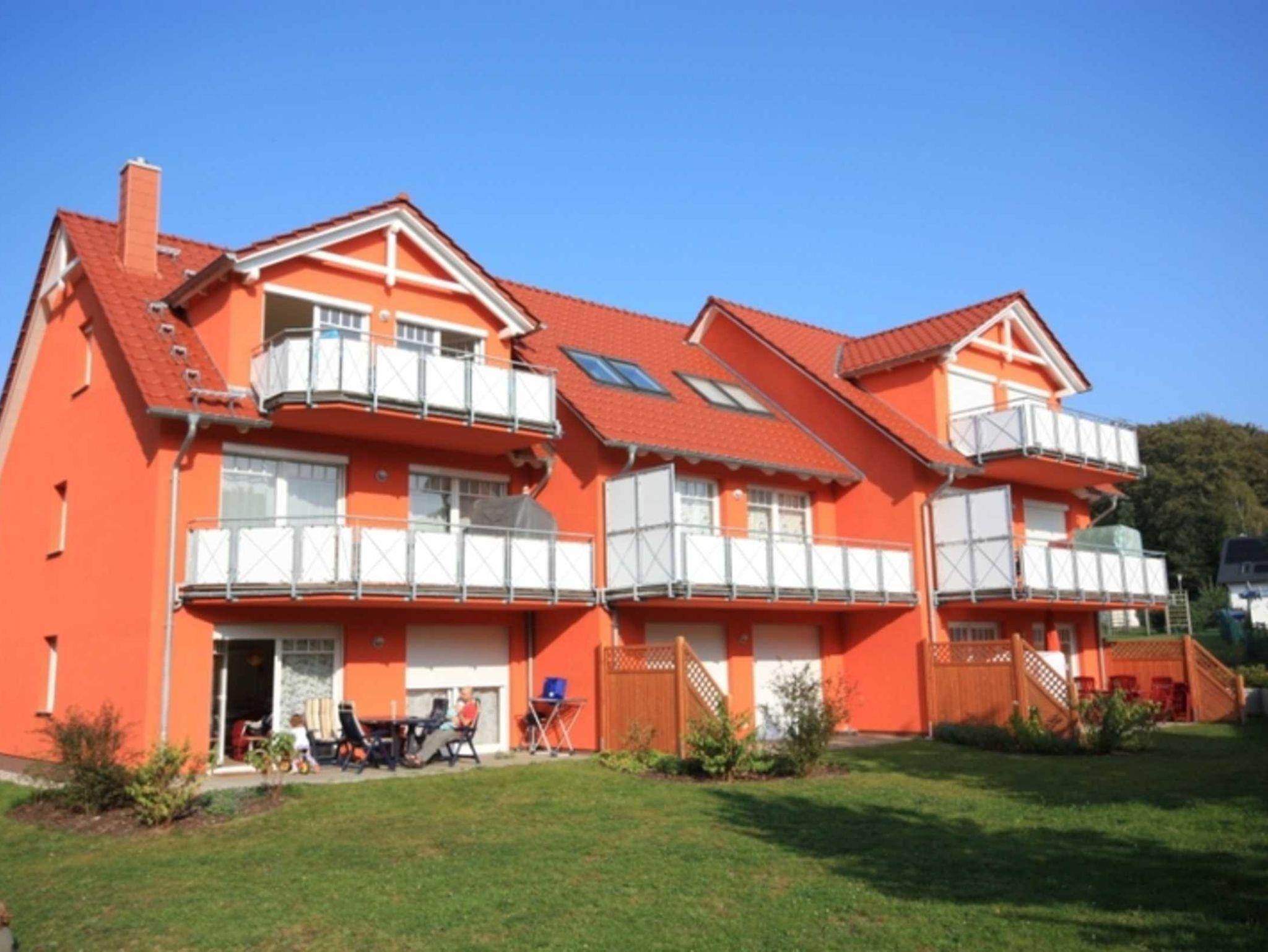 Die Ferienwohnung liegt im Erdgeschoß des Ferienhauses. Sie besteht aus Wohnzimmer, kompl. ausgestatteter Küche, Schlafzimmer und Tageslichtbad. Die Ausstattung der bordeauxfarbenen Einbauküche ist neuwertig funktional und qualitativ hochwertig unter anderem mit Toaster, Kaffeemaschine, Mikrowelle mit Grill, Kochfeld, Geschirrspüler, Gefrierfach. Große Süd-Terrasse mit Blick auf den Küstenwald, große Spielwiese. Diese Ferienwohnung ist mit einem Echtholzkamin ausgestattet.