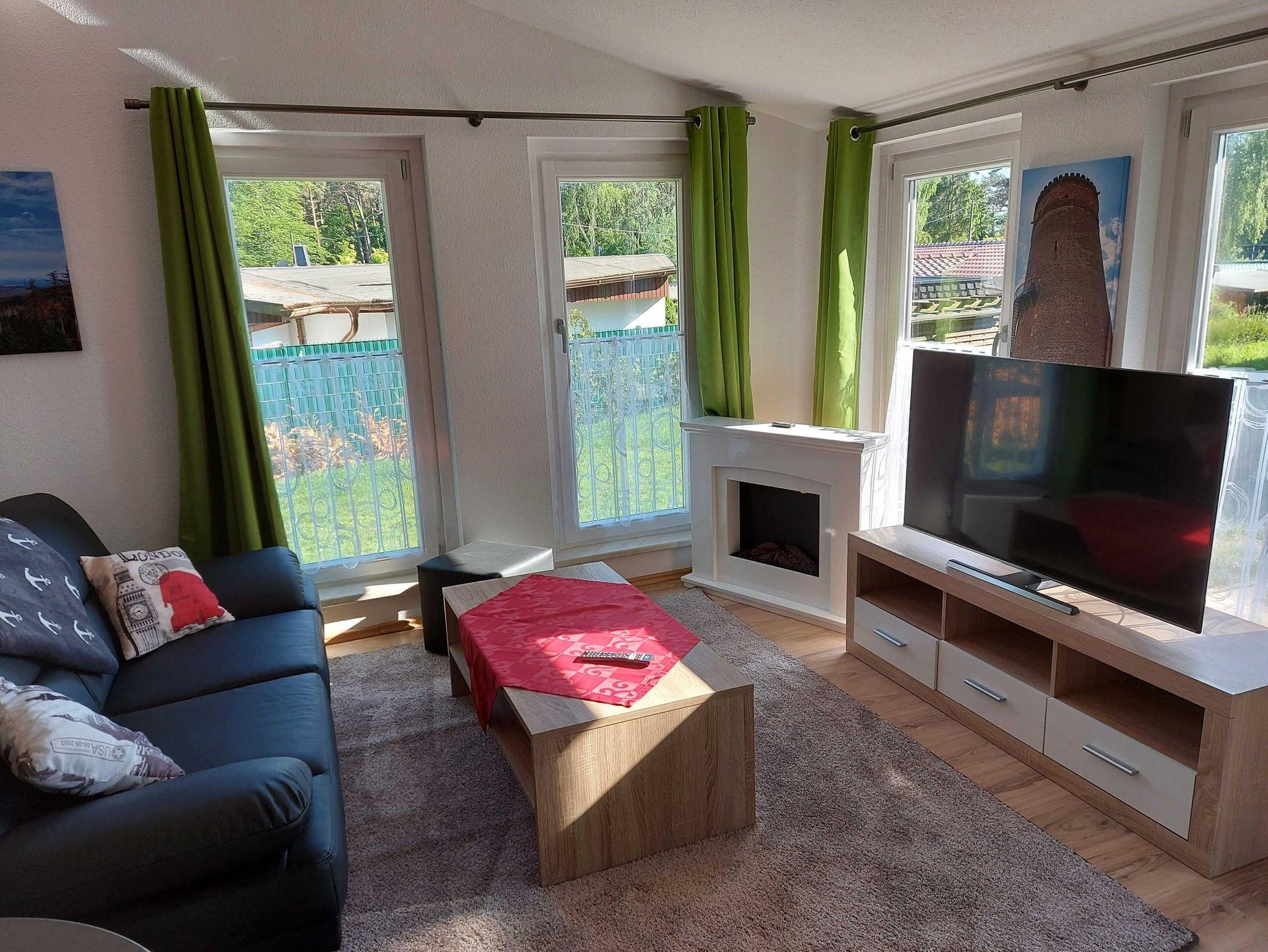 Gemütlicher Bungalow in Koserow mit Terrasse, Elektrokamin und moderner Ausstattung für erholsame Tage.