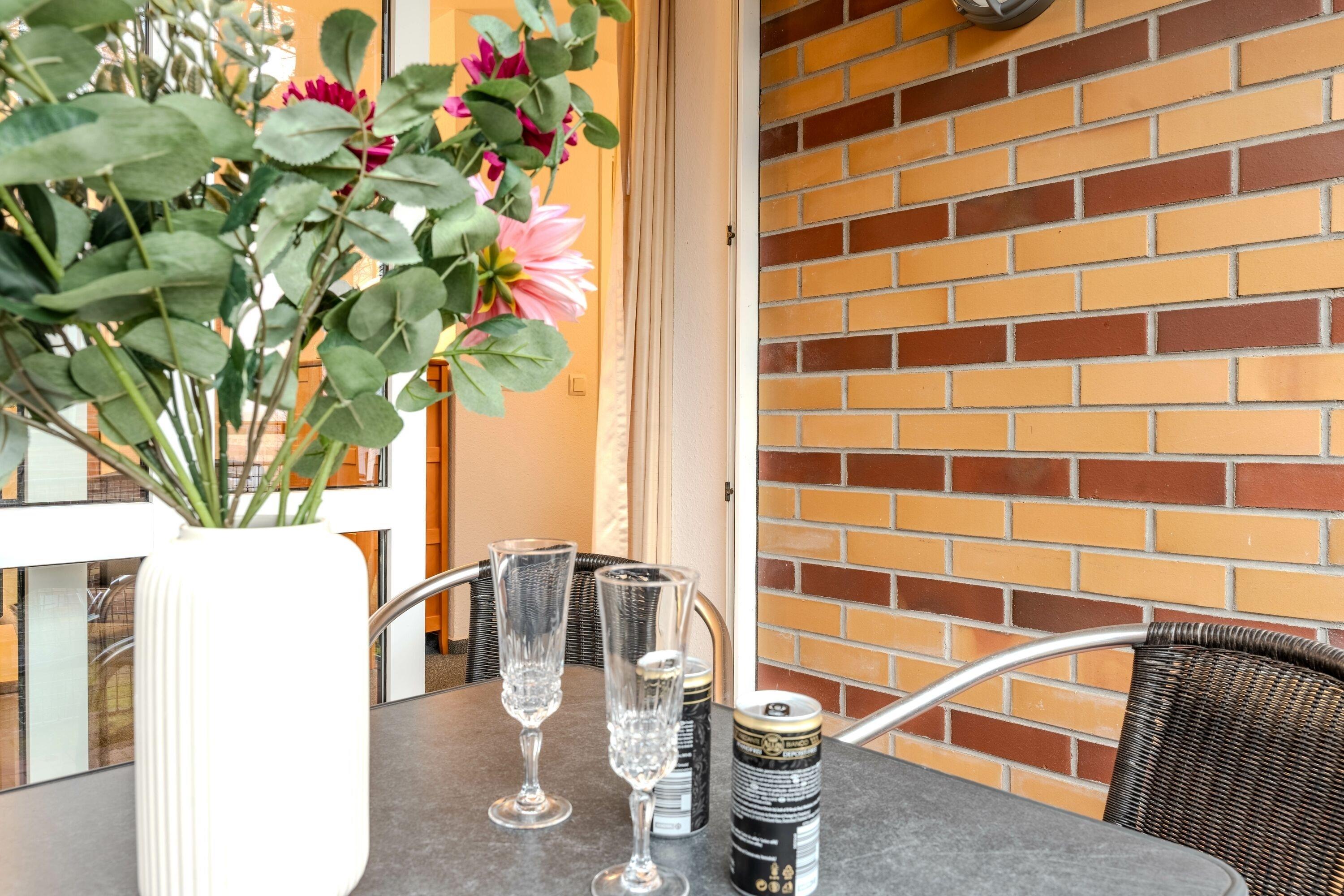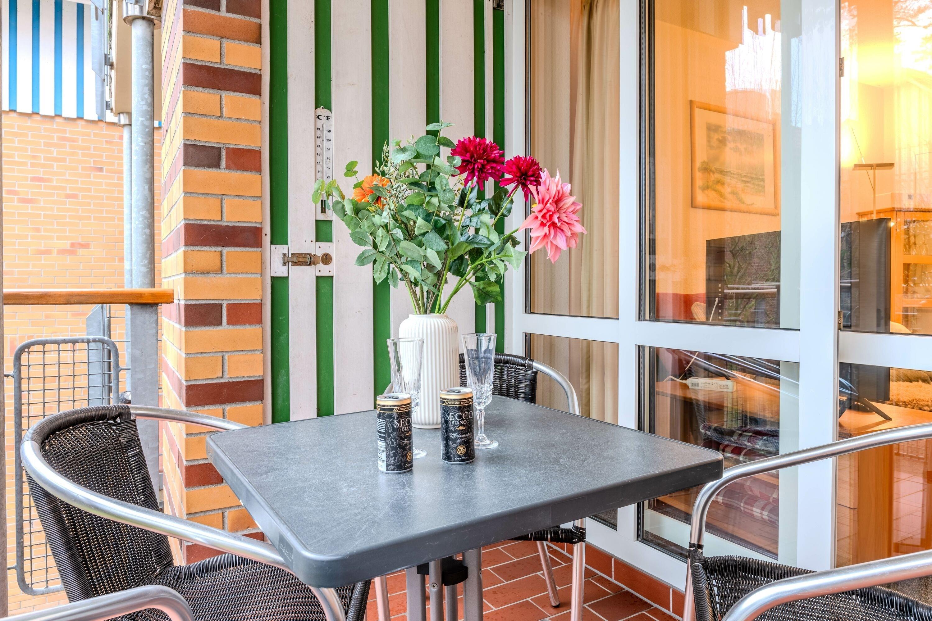 Die Ausstattung der Ferienwohnung lässt keine Wünsche offen. Ein WLAN/Internetzugang steht den Gästen kostenlos zur Verfügung. Der Balkon lädt zum Verweilen und Genießen der frischen Seeluft ein. Für die sichere Aufbewahrung von Fahrrädern ist ein abschließbarer Fahrradraum vorhanden. Auch ein Pkw-Stellplatz und ein Fahrradstellplatz stehen den Gästen zur Verfügung.