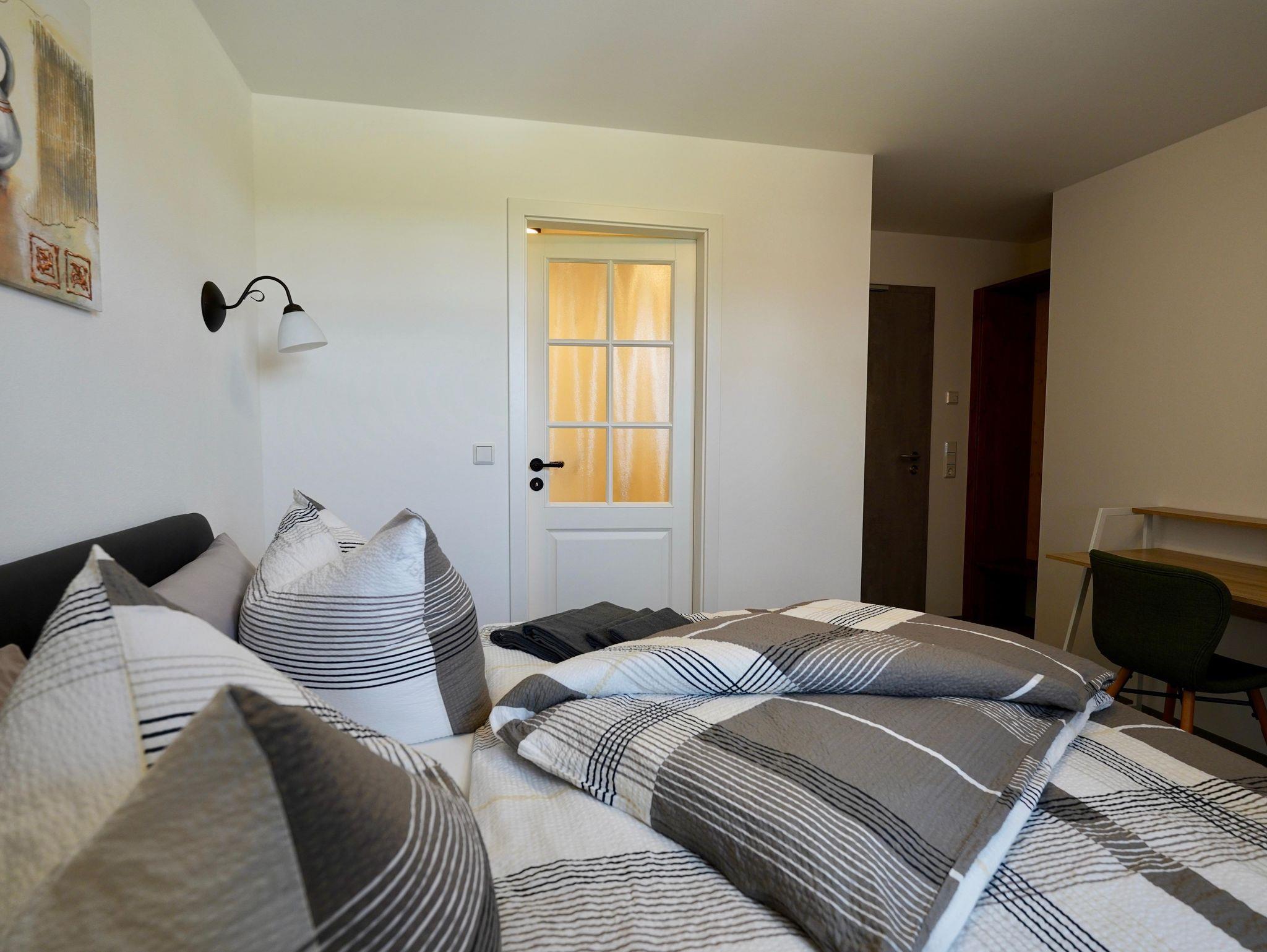 Unsere Doppelzimmer Bieleboh und Czorneboh sind mit einem großen Doppelbett ausgestattet und verfügen über ein geräumiges Bad mit großer Dusche, WC und Waschtischschrank sowie beleuchtetem Spiegel. Die Doppelzimmer sind möbliert mit beleuchtetem Kleiderschrank, Schreibtisch und Garderobenecke und verfügen überdies über einen Flachbild-TV (schwenkbar an der Wand angebracht) und über einen Kühlschrank, Wasserkocher mit einer kleinen Kaffee und Tee-Auswahl sowie einer Flasche Mineralwasser als Begrüßungsgetränk. Im Zimmerpreis ist der Bettwäsche- und Handtuchservice inbegriffen, ebenso wie die Endreinigung nach dem Check Out.