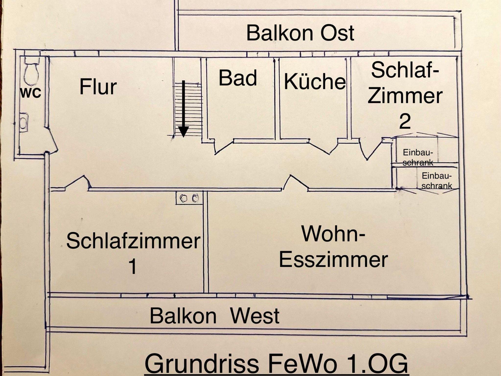 Die Ferienwohnung verfügt über 2 Schlafzimmer mit Doppelbetten, die Matratzen sind jeweils getrennt (1-mal elektr.). Die Schlafzimmer liegen ca. 10m am jeweiligen Gangende voneinander entfernt.
